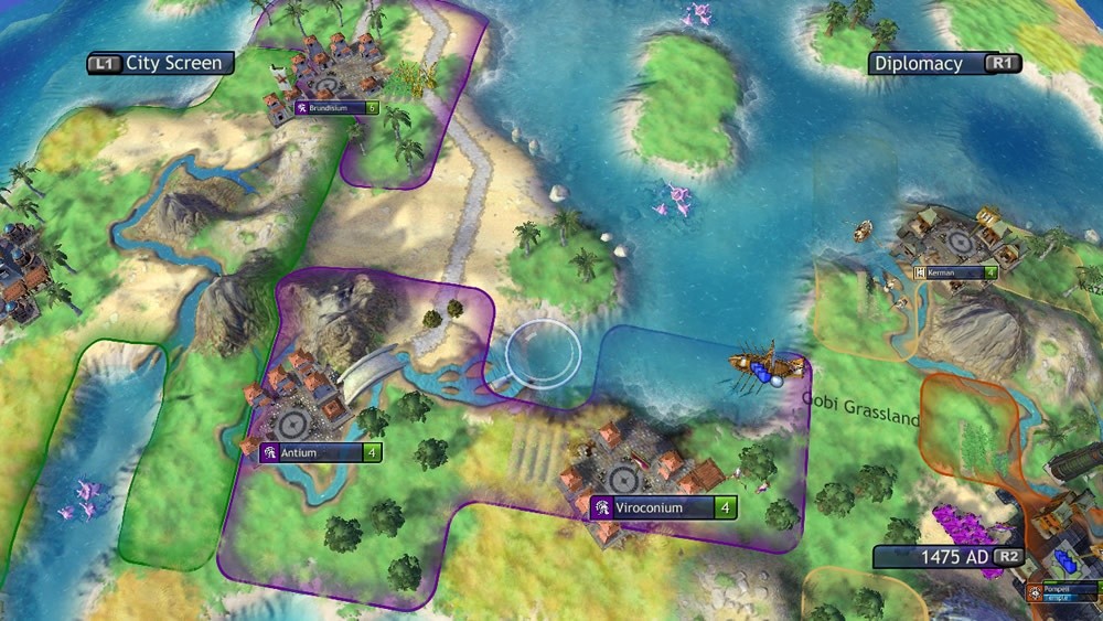 Sterowanie oraz opanowanie zasad rządzących grą nie powinno sprawić nikomu problemu, nawet jeżeli ktoś w temacie Civilization jest kompletnym laikiem. Wszystkie przyciski na padzie zostały wykorzystane i doskonale zaprojektowane, dzięki czemu nie trzeba kombinować, jak przeprowadzić daną akcję. Zresztą przez cały czas towarzyszą nam świetnie wykonane karykatury znanych historycznych postaci, mówiących mową Simsów z akcentem charakterystycznym dla danej narodowości, co brzmi bardzo komicznie. Postacie te to nie tylko walor estetyczny gry – na początku tłumaczą nam, jak poruszać się w świecie Revolution i wyjaśniają podstawowe zasady. W późniejszym czasie reprezentują inne cywilizacje, z którymi możemy zarówno zawierać sojusze, prowadzić rozmowy dyplomatyczne, jak i je niszczyć. Każde działanie ma tutaj swoje wady i zalety.
