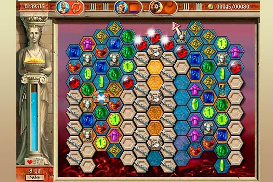 Herosi Hellady to pozycja, która w świetny sposób pozwala sprawdzić, na ile szybko potrafimy myśleć i działać. To pozycja logiczna, ale do jej pomyślnego ukończenia ważne są także szybkie palce. Rozgrywka toczy się na niewielkiej planszy podzielonej na pola, na których przesuwają się kolorowe kryształy. Posługując się myszką należy te kryształ łączyć w grupy minimum po trzy jednej barwy. Im dłuższy łańcuch w ten sposób utworzymy, tym więcej punktów zostanie zapisanych na nasze konto. Na wykonanie zadań mamy określony czas. Kolejne etapy wprowadzają do zabawy interesujące modyfikacje. Musimy na przykład rozbijać kombinacje kryształów spiętych łańcuchami lub linami. Trzeba też doprowadzać do wybuchów, które usuną specjalne głazy lub żetony. Przy okazji na planszach może pojawić się wiele bonusów. Dla przykładu – wplecenie w łańcuch klepsydry doda nam trochę cennego czasu na ukończenie zadania głównego. Ponieważ fabuła tej gry logicznej nawiązuje do mitów greckich, przechodząc kolejne etapy odblokowujemy bohaterów i herosów. Dysponują oni specjalnymi zdolnościami, które można wykorzystać w rozwiązywaniu kolejnych układanek. Na przykład Ikar potrafi usuwać pojedyncze żetony, jeśli wcześniej zapewnimy mu dopływ niebieskiej energii. Z kolei Zeus może obdarować nas losowym ułożeniem żetonów, jeśli zdarzy się tak, że na planszy dojdzie do pata. Co jakiś czas możemy również rozwiązać puzzle, po to aby odblokować sobie obrazek, który można potem zamieścić na pulpicie.