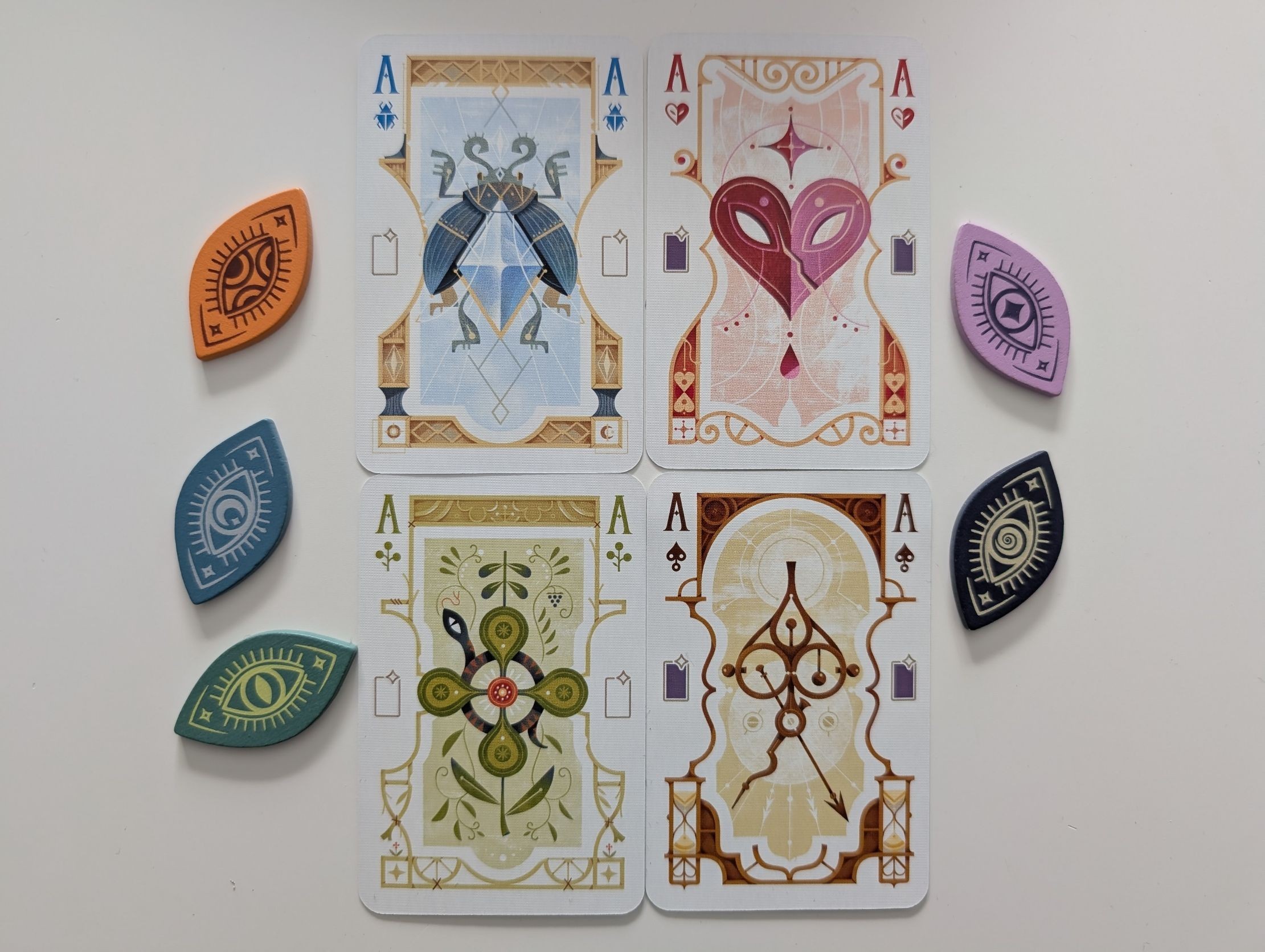 Co więcej, każda karta ma z boku dodatkowe zasady, dostępne po zagraniu jej na pole gry. Ale o tym później. Zwykła szóstka karo może więc pozwolić nam na dobieranie kart, wymianę, pozyskanie run, podejrzenie kilku kart i ogólnie na całkiem fajną manipulację.