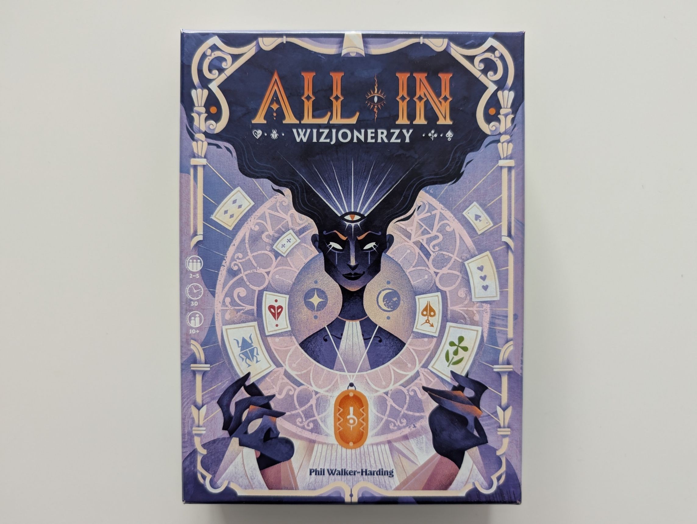 All In: Wizjonerzy to gra dla od dwóch do pięciu osób o raczej niskim poziomie trudności. Nie ma też nic wspólnego z hazardem, mimo korzystania z motywów pokerowych. Premiuje raczej dobrą pamięć i szacowanie. W sumie, to dość podobnie do prawdziwego pokera, ale przynajmniej nie gramy na pieniądze tylko zdobywamy specjalne runy. Fabularnie, jesteśmy dodatkowo jasnowidzami. Ale żeby nie było nam zbyt prosto, to gramy z innymi jasnowidzami i wygra ten, kto zobaczy wynik najjaśniej.