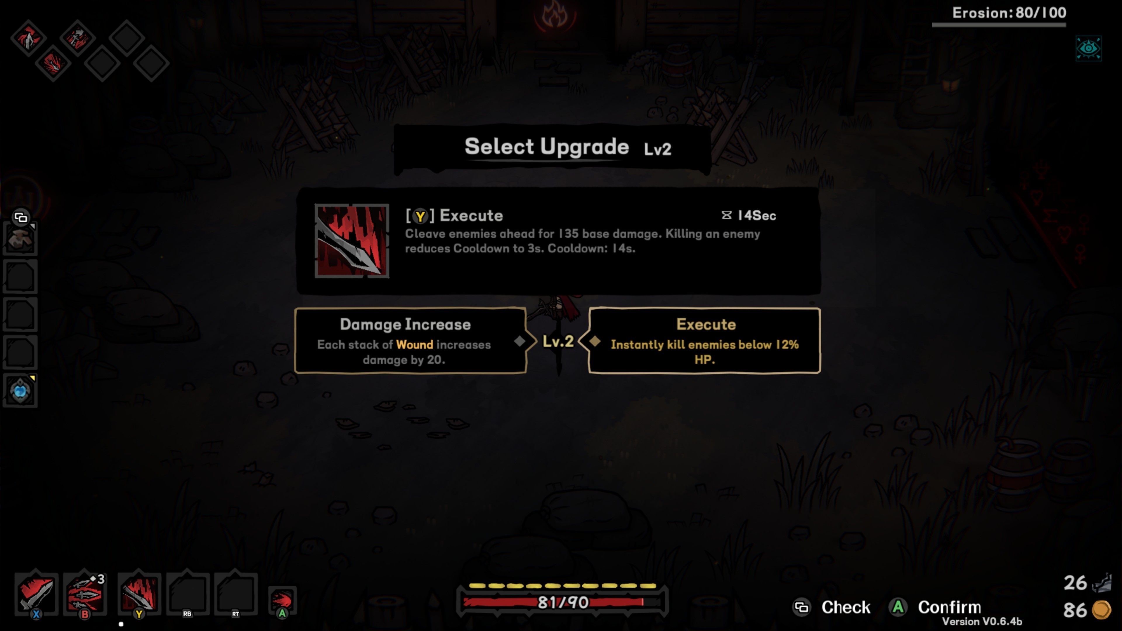 Cinderia to gra, w której nie ma jednak nic za darmo, bo odblokowując czy też ulepszając zdolności napełniamy pasek erozji. Jeśli wypełnimy go w całości gra będzie mogła nas ukarać jakimś negatywnym efektem (np. im dłużej trwa walka, tym mniejsze obrażenia zadajemy albo przeciwnikom powoli regeneruje się zdrowie). Musimy więc mieć się na baczności i tworząc wymarzoną postać cały czas mieć z tyłu głowy to, że nie ma co przesadzać, bo bycie zbyt słabym w Cinderii nie jest mile widziane, ale bycie zbyt mocnym może napytać nam biedy. Prawda, że ciekawe? Cinderia to taki system naczyń połączonych. Co prawda w internecie znajdziemy już najlepiej zoptymalizowane buildy, ale korzystanie z tego typu poradników zabija całą frajdę. Jasne, poziom trudności jest tutaj dość wysoki (może nie na samym początku, ale sukcesywnie wzrasta), więc jeśli nie dajemy sobie rady, to zamiast sprawdzać, co tam w sieci słychać, lepiej obniżyć sobie stopień wyzwania. W jaki sposób?