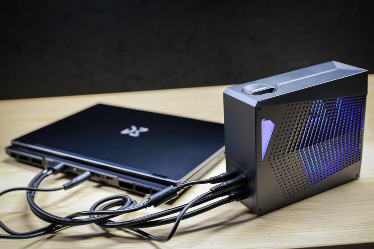 Pierwszy to tryb tradycyjny, w którym zasilanie podłączamy bezpośrednio do komputera i korzystamy z niego tak, jak byśmy to zawsze robili niezależnie od miejsca, w którym się znajdujemy. Drugim natomiast jest tryb z wykorzystaniem autorskiego chłodzenia wodnego Dream Waterfall. Wtedy zasilanie podłączamy bezpośrednio do chłodzenia, a specjalny kabel zasilający podłączamy do laptopa. Podobnie czynimy z podłączeniem rurek, poprzez które popłynie płyn chłodzący wprost do urządzenia. Tutaj bez problemu możecie wykorzystać wodę zdemineralizowaną czy inne chłodziwo przeznaczone do pecetów.