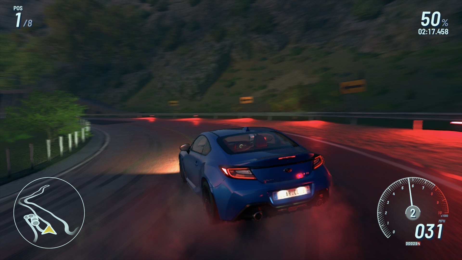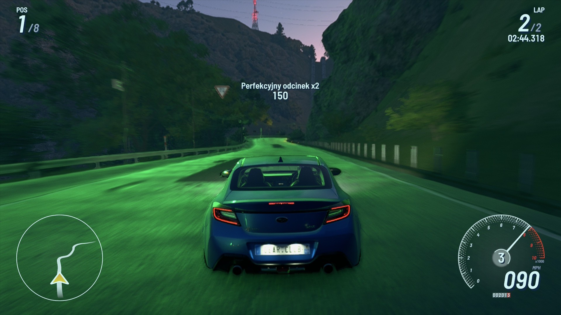 Japonia i Francja mają naturalnie inny klimat, ale także kolorystykę. Obie lokacje oferują również nieco inną specyfikę samych tras. Japonia daje się bardziej wyszaleć na krętych i ciasnych serpentynach, z kolei Francja posiada więcej łagodnych łuków. Są także trasy nastawione na prędkość, jak choćby autostrady, które albo należy przejechać poniżej określonego czasu albo uciekając przed rywalem. Muszę przyznać, że to jeden z najfajniejszych elementów gry, a wymijanie ruchu ulicznego na zatłoczonej Tokijskiej autostradzie potrafi niesamowicie przetestować refleks. Dodatkowo możemy pościgać się w nocy, w dzień lub o zachodzie słońca, a to dodaje wyścigom pewnego uroku, zwłaszcza nocne zmagania po krętych górach Japonii. Niestety specyfika lokacji sprawia, że wiele z 50 dodanych tras jest do siebie bardzo podobnych. Już w połowie pierwszej kampanii w Japonii odczułem pierwsze znużenie i powtarzalność. Po wejściu do rejonu Francji na chwilę pojawił się powiew świeżości, ale później uczucie szybko się odnowiło. Niestety nie pomaga w tym wszystkim konieczność kilkukrotnego powtarzania tych samych wyścigów w celu zdobywania punktów, także monotonia wkrada się tutaj bardzo szybko. Muszę jednak przyznać, że w obu rejonach możemy podziwiać bardzo ładne widoki i jest to jakiś malutki rodzaj rekompensaty.