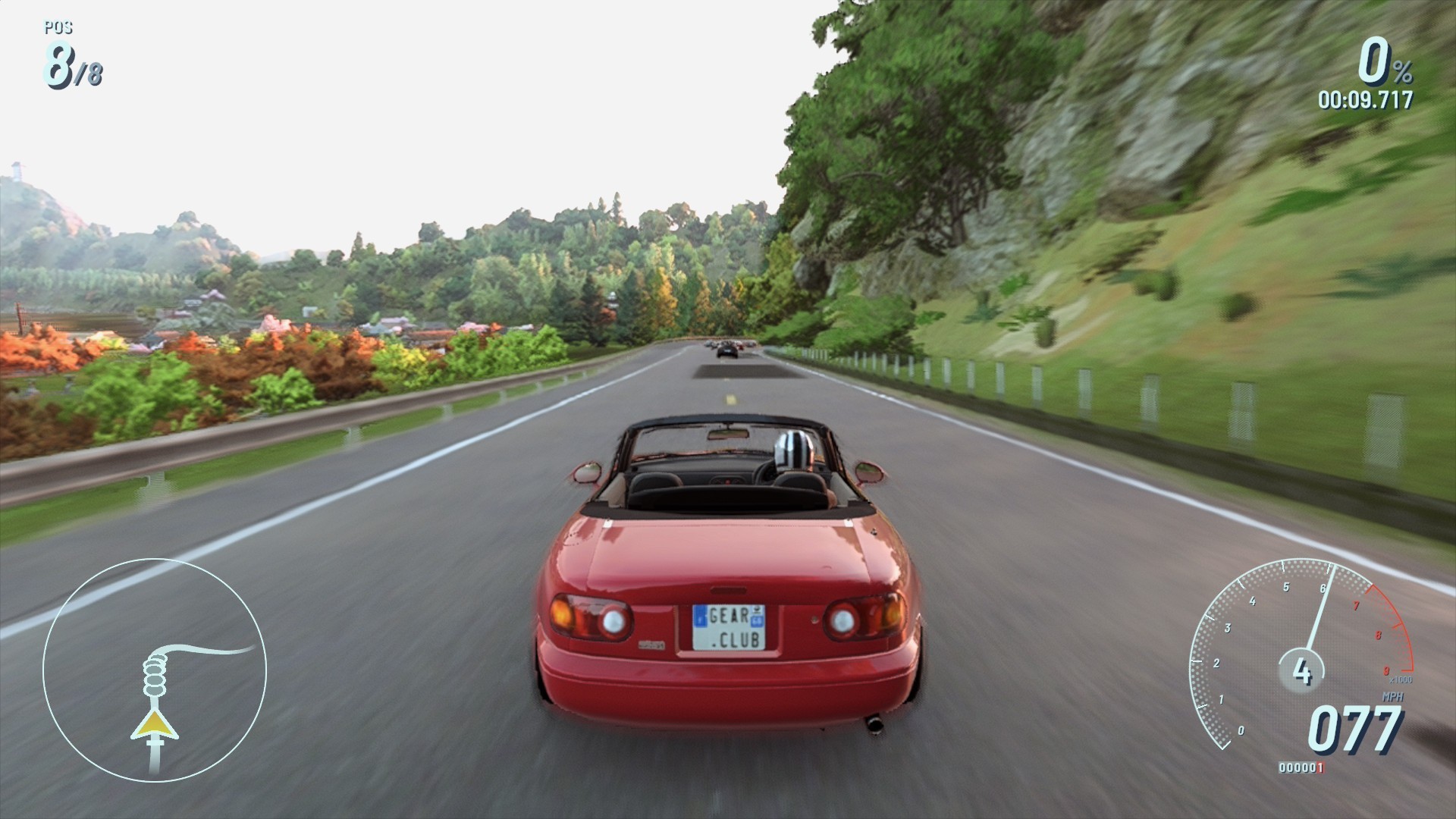 Tryb wydajności na szczęście działa stabilnie, więc umożliwia przyjemną jazdę, ale kosztem nieco rozmytego obrazu, uboższych tekstur otoczenia i oświetlenia, a także sporej ilości doczytywanych tekstur, zwłaszcza roślinności. Musicie przygotować swoje oczy na małe cierpienie, ale mimo wszystko jest duża szansa, że jak się wciągniecie w ściganie, to mózg z czasem zignoruje takie “widoki”. Jestem tym o tyle zaskoczony, że ogólny poziom grafiki i skomplikowania gry, nie jest na jakimś super wysokim poziomie, a jednak taki tryb jakości nie wyrabia się na Switchu 2. Przypomnę, że na tym samym Switchu, na którym bardzo dobrze działają znacznie bardziej atrakcyjne i wymagające tytuły jak choćby Cyberpunk 2077 czy też Final Fantasy 7 Remake… Żeby było zabawniej, Gear.Club Unlimited 3 było krojone pod tę konkretną konsolę, więc teoretycznie studio powinno mieć możliwość dopieszczenia produktu tak, aby ten działał na tym sprzęcie idealnie, przy okazji dobrze się prezentując. Kompletnie nie wiem co tu poszło nie tak. Zbyt mały budżet lub gonitwa z premierą? Ta była już przekładana dwukrotnie, więc kto wie...