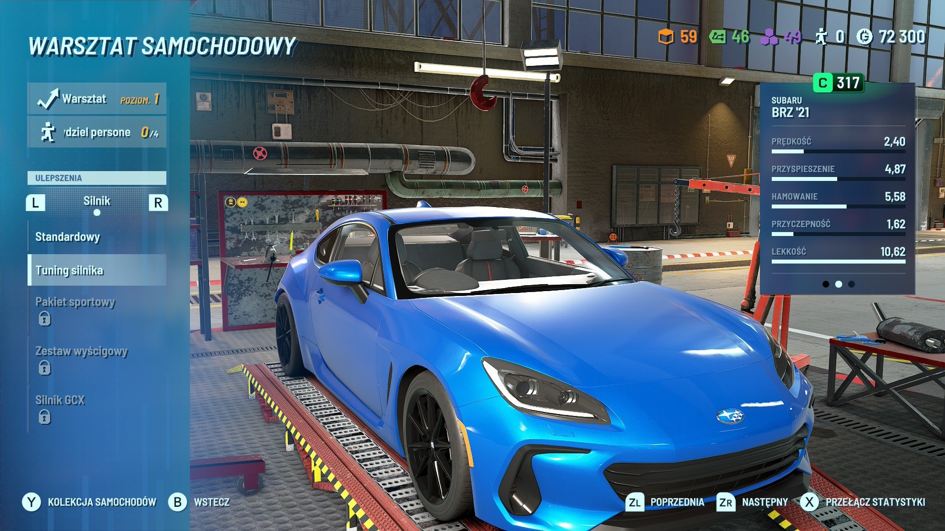 W trakcie kampanii rozbudowujemy swój garaż, a właściwie dwa. Krótki wstępniak zaczyna się we Francji, następnie właściwa przygoda startuje już w Japonii, by po kilkunastu wyścigach znowu przeniosła się do Francji. Garaż w obu miejscach wygląda inaczej, ale kupione i ulepszone sprzęty pozostają po przelocie do innej lokalizacji. Te sprzęty to różne wyposażenie profesjonalnego warsztatu, dzięki któremu możemy zwiększać osiągi samochodów lub zmieniać je pod kątem wizualnym. Tuning jest prosty i polega na etapowym udoskonalaniu poszczególnych obszarów, takich jak aerodynamika, silnik, opony i tym podobne. Gdy kupimy jeden pakiet, wówczas odblokowujemy następny – droższy, ale lepszy. W przypadku wizualnych elementów, po prostu kupujemy to co nam się podoba, jeśli oczywiście nas na to stać.