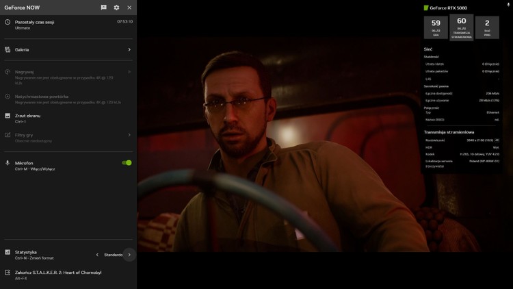 Z pełnej mocy usługi, czyli serwerów opartych na RTX 5080 skorzystały tutaj tylko dwa pierwsze tytuły, ale pamiętajmy o tym, że usługa dopasowuje nam sprzęt w chmurze do realnych wymagań. Z najmocniejszych kart skorzystamy więc przede wszystkim w najnowszych tytułach, które mają najwyższe wymagania lub po prostu wspierają najnowsze iteracje technologii NVIDII, takich jak DLSS, czy pełny Ray Tracing z Ray Reconstruction. Lista tytułów wykorzystujących w pełni możliwości SuperPOD-ów z Blackwellami jest coraz dłuższa.