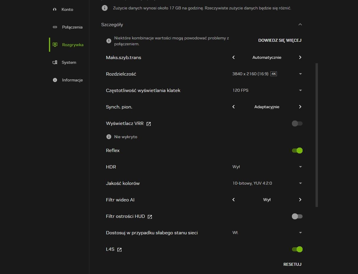 W obydwu przypadkach łączyliśmy się - poprzez ręczne wybranie opcji - z serwerem w Polsce, który jak już wiadomo również dostał karty RTX 5080. W jednym przypadku było to zawalone po dekiel ruchem łącze korporacyjne w firmie, w drugim światłowód od Orange, mający złą sławę wśród użytkowników usługi z powodu wymuszonego routingu przez zagraniczne serwery. Warunki były więc ciężkie, co w sumie oczywiście tylko podgrzało atmosferę.
