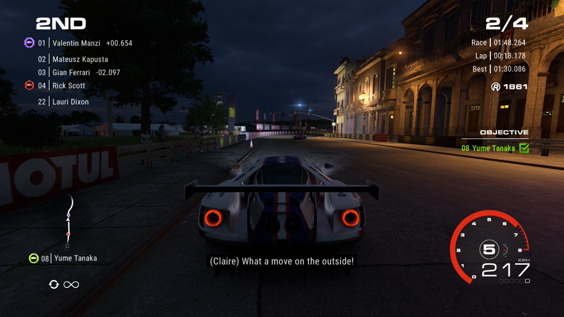 Samej gry nie będę recenzował, ponieważ tutaj absolutnie nic się nie zmieniło od premiery wersji konsolowych i PC, dlatego jeśli chcecie sobie przypomnieć tamte dzieje to odsyłam was do tekstu Muradina. To nadal ta sama przyjemna gra wyścigowa, z tymi samymi zaletami i bolączkami. Na szczęście, co moim zdaniem jest niesamowicie ważne na konsoli Nintendo Siwtch (zarówno 1 jak i 2), model jazdy GRID Legends bardzo dobrze pasuje do specyfiki konsoli. Mam tu na myśli triggery, które odpowiadają za hamowanie i dodawanie gazu. Wiele “poważniejszych” wyścigów nie radzi sobie na Switchu, właśnie przez te dwa przyciski, które albo nie działają wcale, albo na 100 procent możliwości. To naprawdę mocno utrudnia precyzję i trzeba ich zazwyczaj używać pulsacyjnie, aby jakkolwiek dobrze pojechać w tego typu produkcjach. Na szczęście model jazdy ostatniego GRIDA świetnie sobie radzi na tym polu i nawet wciskając gaz lub hamulec do końca, odpowiednie systemy sprawiają, że jazda mimo wszystko zachowuje jakąś płynność. Właśnie dlatego jest to w tym momencie i znów – moim zdaniem – najlepsza gra wyścigowa inna niż zwariowane gokarty, dostępna na konsoli Nintendo Switch 2. Wciąż można pojechać precyzyjnie, szybko i przy tym świetnie się bawić, zamiast nieustannie frustrować ze względu na sterowanie. Dla mnie, jako fana wyścigów i gościa, który zabiera Switcha na wakacje innego rodzaju wyjazdy, jest to wybawienie.