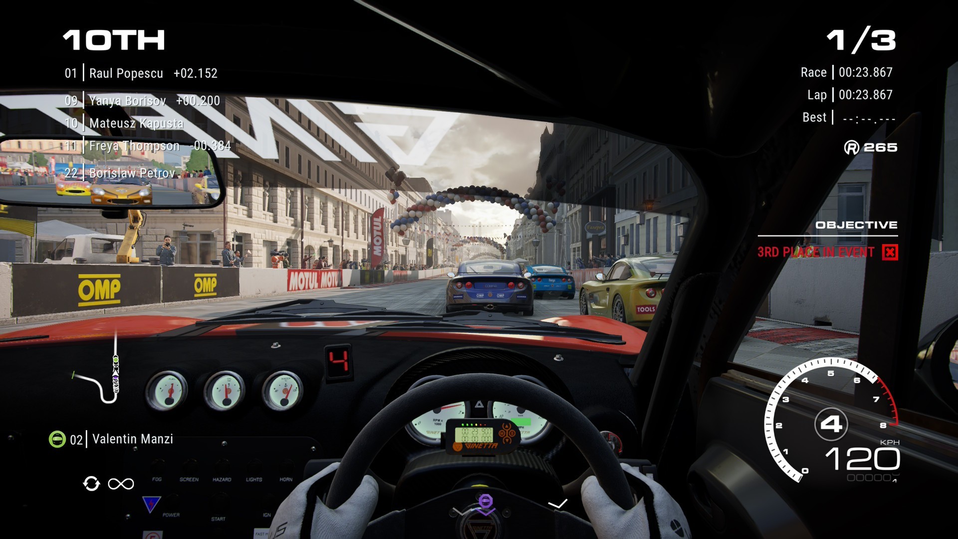 Niezależnie od wybranego trybu pracy, gra cały czas prezentuje się bardzo dobrze. Modele samochodów są szczegółowe, oświetlenie wygląda niesamowicie, zwłaszcza w nocy i podczas intensywnych opadów deszczu, kokpity nie uległy uproszczeniu, a efekty cząsteczkowe w postaci choćby iskier niemal nie odbiegają od tego co zdążyliśmy zobaczyć na dużych konsolach i PC. Co więcej, świetna jakość grafiki idzie w parze z bardzo dobrą stabilnością działania, co w przypadku Switch często jest kluczowe. Nie ważne czy stawka ma ponad 20 kierowców, nie ważne jak bardzo szczegółowe są trasy, nawet nie jest ważne czy wpadniemy w wir jakiejś ogromnej kraksy – gra we wszystkich trybach trzyma wyznaczony przez twórców klatkarz i ani myśli się buntować.