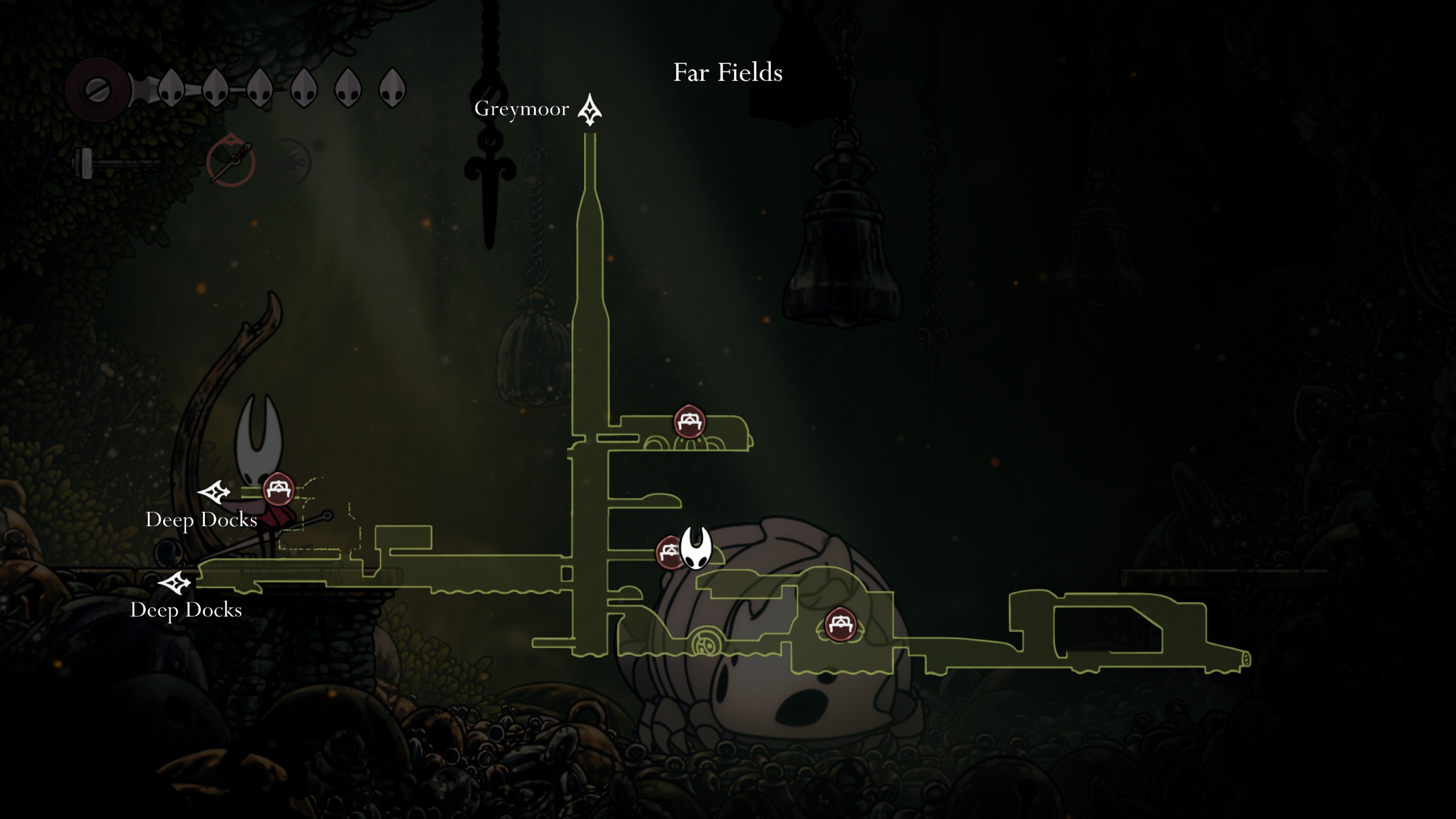 Najbardziej istotną walutą w Hollow Knight: Silksong są różańce, czyli rosaries, które niestety nie wypadają ze wszystkich przeciwników. Kiedy zginiemy, niczym w Soulsach, musimy dobiec do miejsca naszego zgonu, by odzyskać utracone rosaries (na szczęście nie przegapimy ich, bo pojawiają się one w formie ogromnego kokonu) - tak jak w produkcjach od From Software mamy na to tylko jedną szansę. Rosaries pozwalają na odblokowywanie wspomnianych już checkpointów, dzięki nim ulepszamy poszczególne elementy ekwipunku, a także kupujemy rozmaite przedmioty, w tym przede wszystkim mapy (choć nie wszystkie, bo niektóre gra przydziela nam z automatu), a także jej pozostałych funkcjonalności. Bo owszem, można nabyć mapę, ale np. nie będzie na niej zaznaczone położenie naszej postaci.