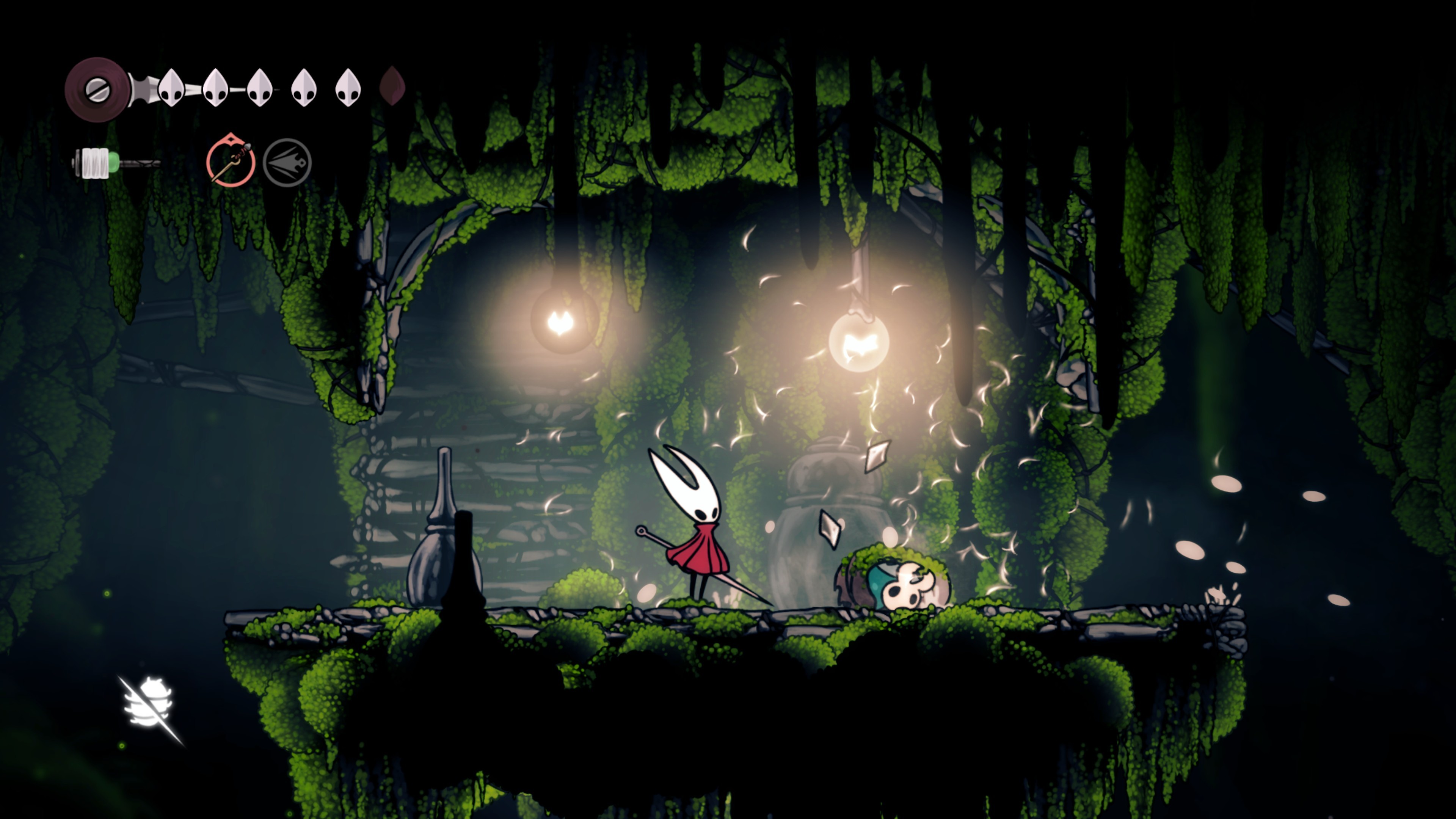 Aby móc korzystać z narzędzi, a także wykonywać zadania poboczne z tablic ogłoszeń, musimy z kolei dysponować odpowiednią liczbą Shell Shardów. O ile bez Shell Shardów można się obejść nawet w kryzysowej sytuacji, o tyle bez Rosaries ani rusz. Dodatkowo z dostępnością tychże były problemy już od samego początku. Tym bardziej, że - po pierwsze - tracimy je podczas śmierci, a nie zawsze zdołamy dotrzeć do miejsca zgonu, a po drugie - nie wypadają one z każdego przeciwnika. Pewnego rodzaju ułatwieniem jest to, że po Pharloom rozmieszczono specjalne punkty, w których możemy - przykładowo - zamienić 80 rosaries dostępnych przy sobie na 60 takich, które będziemy przechowywać w ekwipunku. Nie stracimy ich przy zgonie, skorzystamy z nich w razie potrzeby, więc warto wyposażyć się w ich zapas.