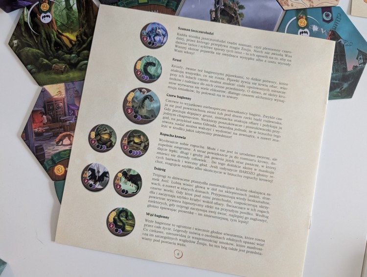 Modularność planszy jest naprawdę super, bo za każdym razem mamy coś innego. Tylko będzie tak przez pierwsze 3 partie, bo liczba kafelków jest stała. W praktyce szybko okazuje się więc, że zawsze korzystamy z tych samych elementów i walczymy z identycznym zestawem potworów. W dodatku żaden z nich nie ma w sobie nic szczególnego.