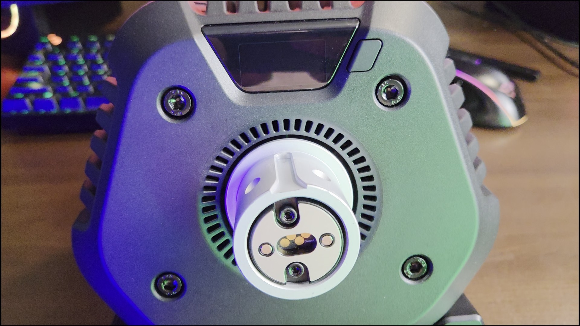 Miłym akcentem jest umieszczony na szczycie bazy mały wyświetlacz LED, dzięki któremu możemy modyfikować różnego rodzaju parametry kierownicy, bez przełączania się do aplikacji G Hub. Gdy z kolei jesteśmy w trakcie zabawy, to wyświetlacz pokazuje nam wykresy z jaką siłą naciskamy na poszczególne pedały, a to bywa czasem pomocne. Jest jeszcze samo RS Wheel Hub, czyli miejsce do którego wpinamy kierownicę. Logitech poszedł z duchem czasu, dlatego umożliwił teraz wymianę koła na inne, więc w przyszłości łatwo dopasujecie ten zestaw do swoich preferencji, ale patrząc po jego wyjściach, raczej będziecie musieli poruszać się w podzespołach z logo Logitech (co nie jest takie oczywiste, bowiem bywają systemy kompatybilne z innymi markami, np. Simagic).