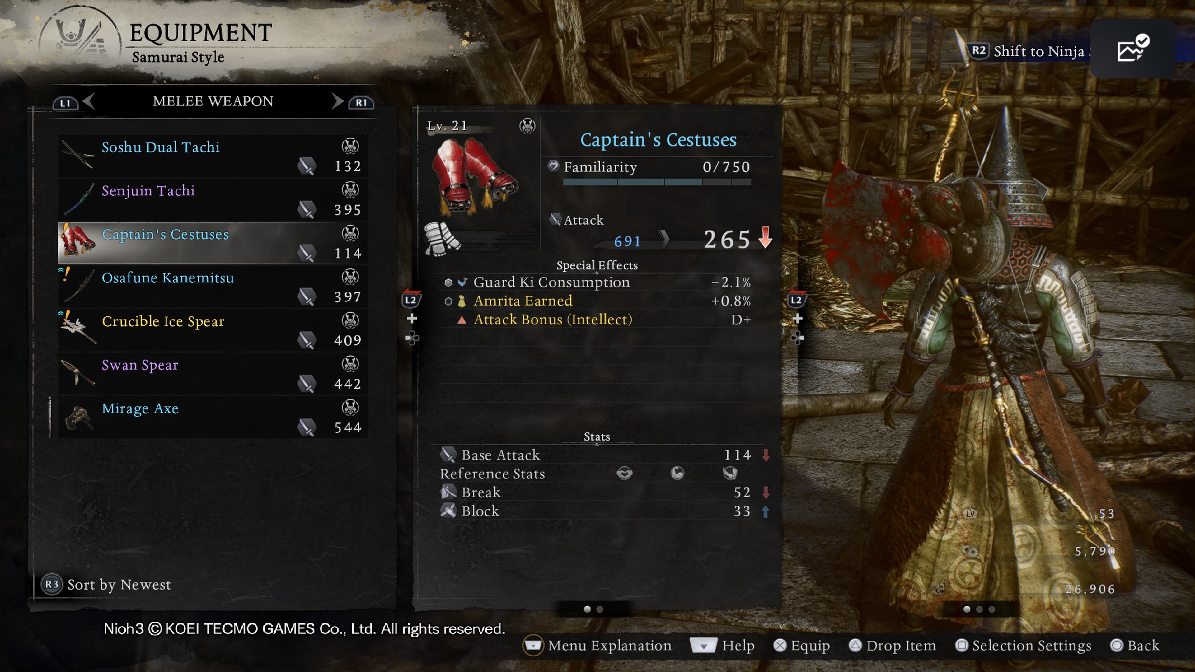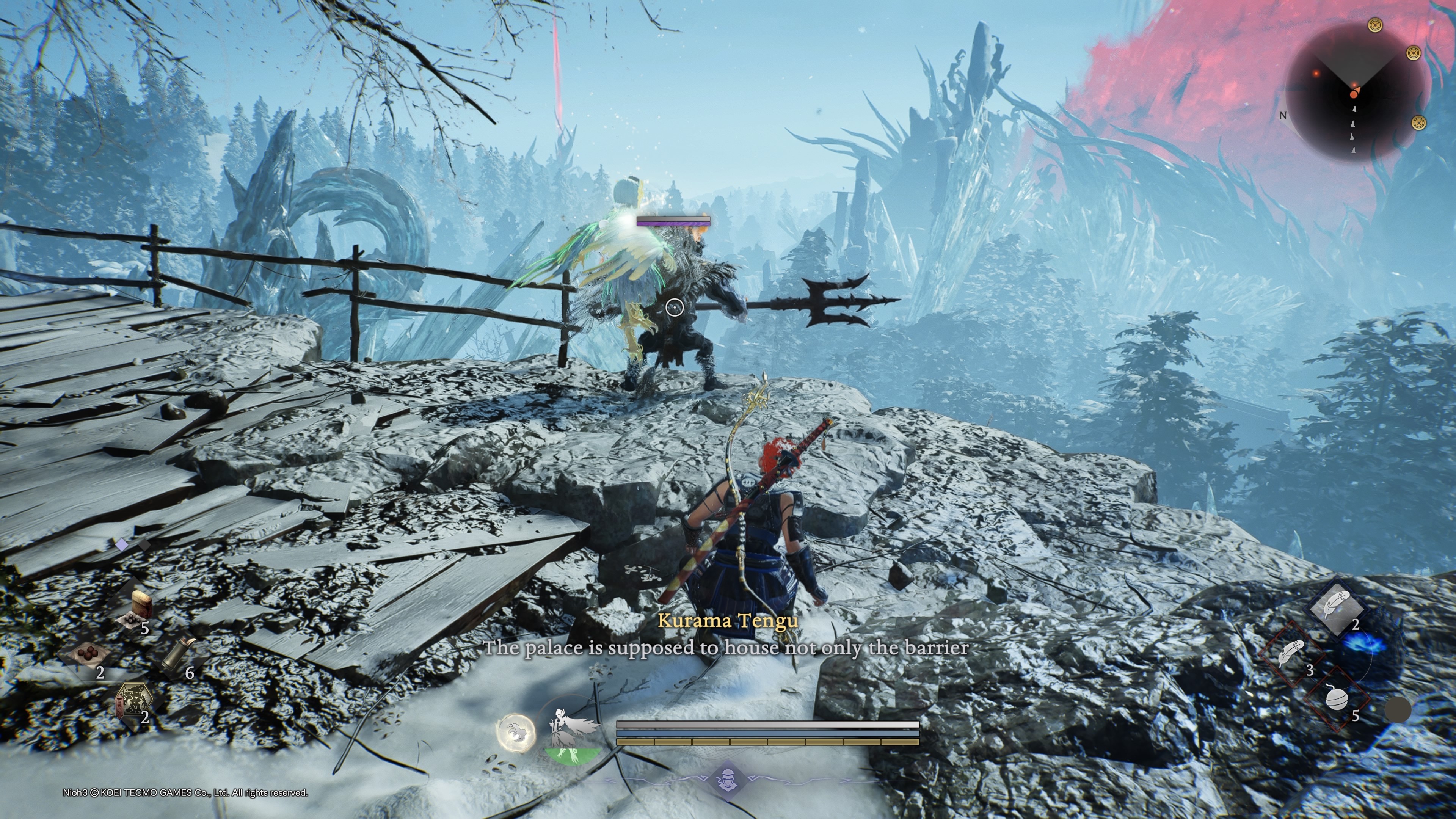 Z kolei ninja to mobilna wersja naszego bohatera. Zamiast impulsu ki ma do dyspozycji umiejętność mist, którą aktywuje R1 po wykonaniu ataku, by szybko uciec przeciwnikowi bez użycia wytrzymałości, a także wytworzyć cień swojej postaci dezorientujący przeciwnika, dzięki czemu w razie potrzeby zaatakuje go z zaskoczenia. W odróżnieniu od samuraja opierającego się na blokowaniu i odbijaniu ciosów niczym w Sekiro: Shadows Die Twice, ninja bazuje głównie na efektownych i efektywnych unikach. Co prawda w przypadku naszego tanka uniki także są dostępne, ale nie pełnią aż tak istotnej roli. Dodatkowo ninja nie ma dostępu do trzech różnych postaw, ale za to może zrobić użytek z kunai, rzucać bombami i innymi różnego rodzaju przedmiotami.