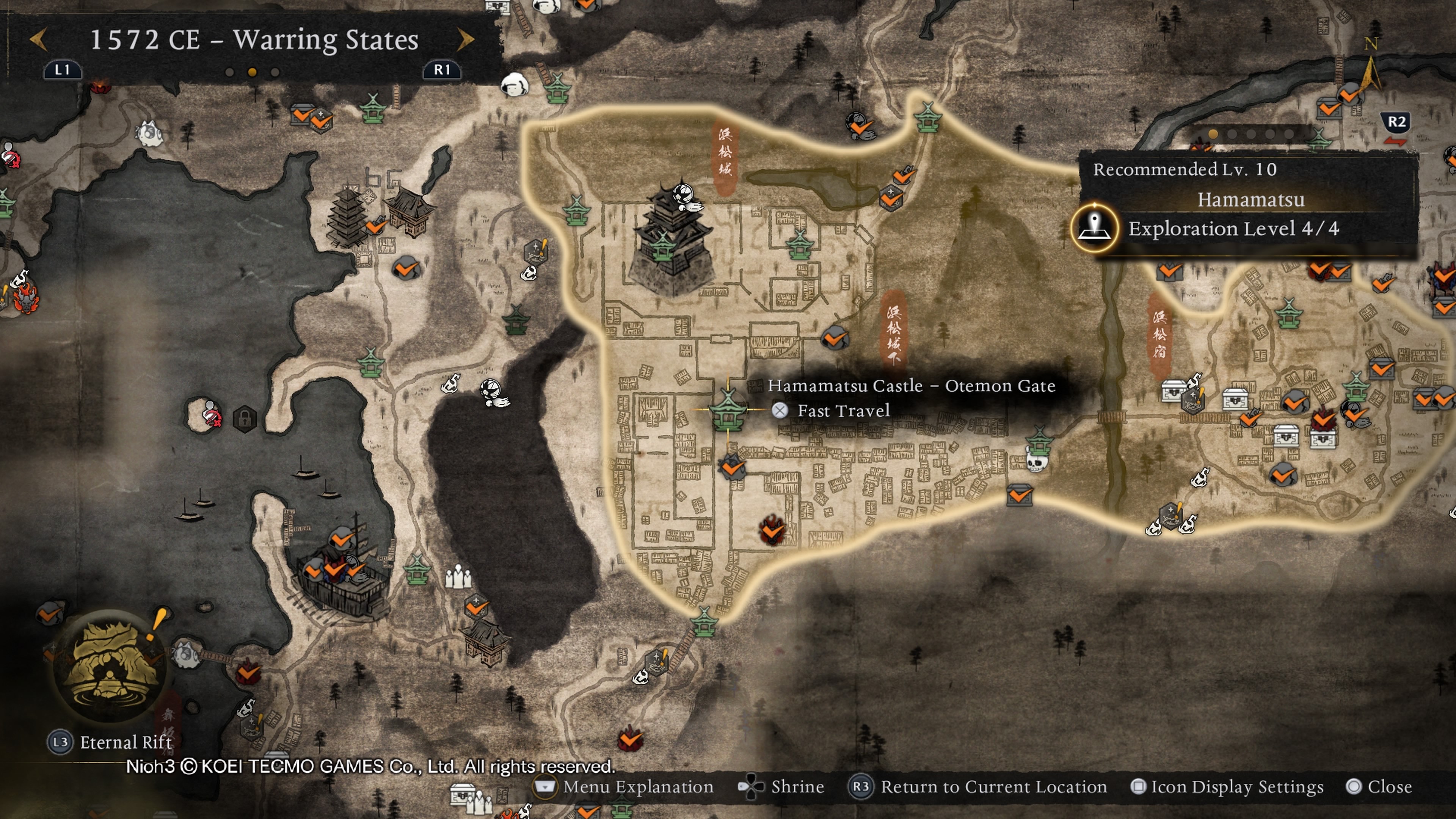 Stosunkowo niewielkie lokacje dostępne w pierwszej i drugiej odsłony Nioh tylko częściowo naprowadzały nas na główny cel misji. Tym razem otrzymaliśmy klasyczny dziennik zadań i znaczniki prowadzące do najważniejszych celów kampanii fabularnych na danym terenie. Tym samym całość skupia się przede wszystkim na odkrywaniu atrakcji ukrytych pod poszczególnymi ikonkami (z czasem łatwo przewidzieć, czego możemy się po nich spodziewać), a także oczywiście walce z przeciwnikami. Niemalże wszystkie tereny, jakie otrzymujemy do eksploracji, mają przypisany rekomendowany poziom doświadczenia naszej postaci. Gdy pojawi się więc gdzieś znacznie wcześniej niż przewidzieli to twórcy, to owszem, mamy szansę na pokonanie wrogów, ale są one raczej iluzoryczne.