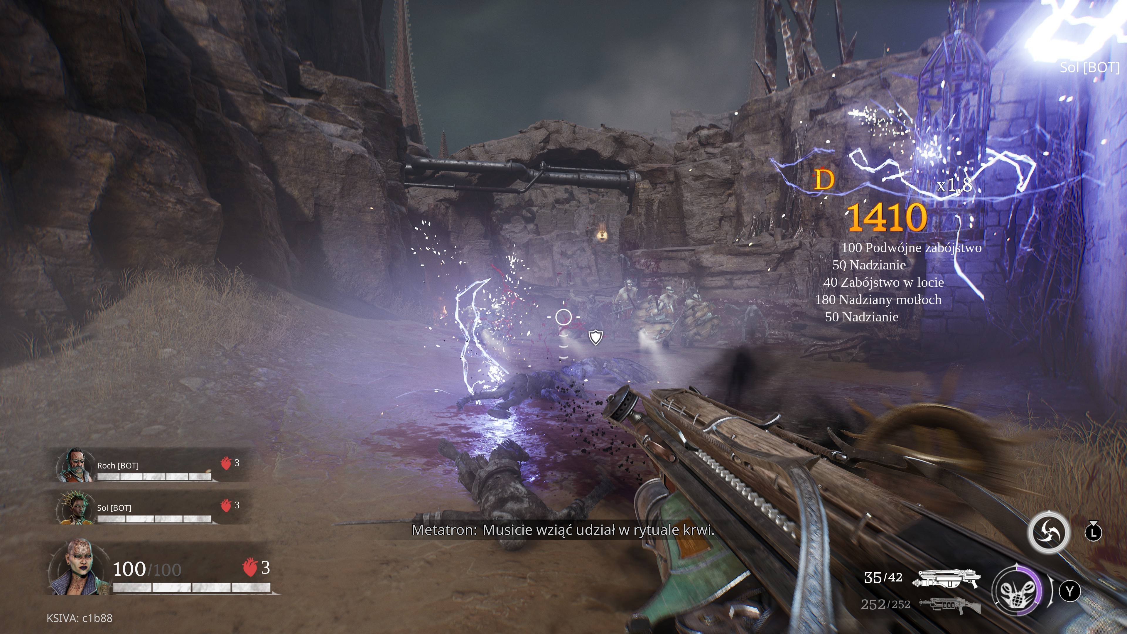 Wyprzedzając pytanie o to, czy można grać solo odpowiedź brzmi – tak, ale nadal walczymy z dwoma towarzyszami kierowanymi przez sztuczną inteligencję, ponieważ gra domyślnie jest stworzona właśnie do takiej rozgrywki. I o ile niektórym w głowie może świtać sformułowanie „hero shooter”, to również trzeba wyjaśnić, iż wybór postaci ograniczany jest głównie do pewnych bonusów czy to do posiadanego życia, czy to do generowania mocy specjalnej wykorzystywaną przez naszą broń (o tym za chwilę)… której to dostajemy dwie sztuki i klasycznego Painkillera. Mimo, ze unosi się w tym wszystkim duch dobrze znanej serii, tak nie jest to ten sam klimat, jaki pojawiał się w przygodach Daniela Garnera w drodze do piekła i z powrotem. Ten z pazurem, momentami mocno horrorowy wręcz bym powiedział.