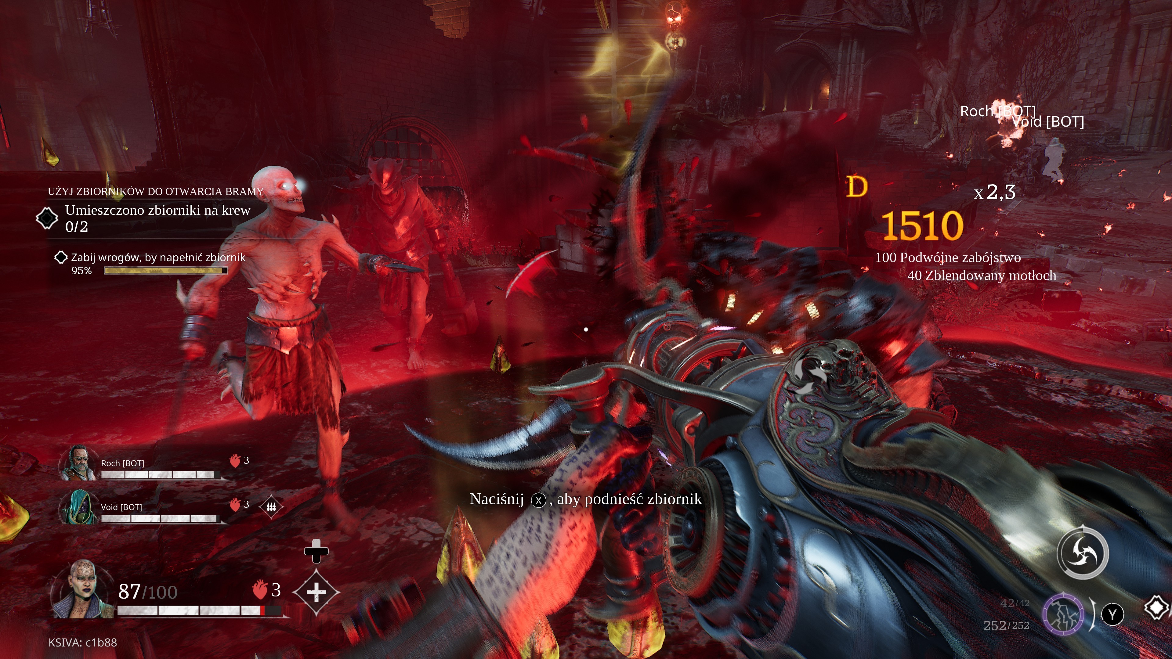 Podobnie nie ma pewności co do tego jak mocno będą się różniły poszczególne mapy pod względem zadań, ponieważ zawartość dema udostępnionego przez twórców nie różniła się zbyt mocno formułą – albo były to walki z hordami na arenach, albo noszenie beczek z krwią do otworzenia bram lub odprawienia rytuałów, które to napełniało się poprzez zabijanie wrogów. Różnica była w delikatnym skomplikowaniu samego procesu pewnymi przeszkodami terenowymi i kompozycją przeciwników. Inną kwestią jest to, że gdy już pojawił się boss… to również pojawiło się podziękowanie za grę. Trudno więc ocenić czy walki z bossami będą podobnie jak w poprzednich grach wymagały czegoś więcej niż zwykłego strzelania do „worka z życiem”. Po tym, jak prezentowała się arena można było wywnioskować, że w teorii tak.