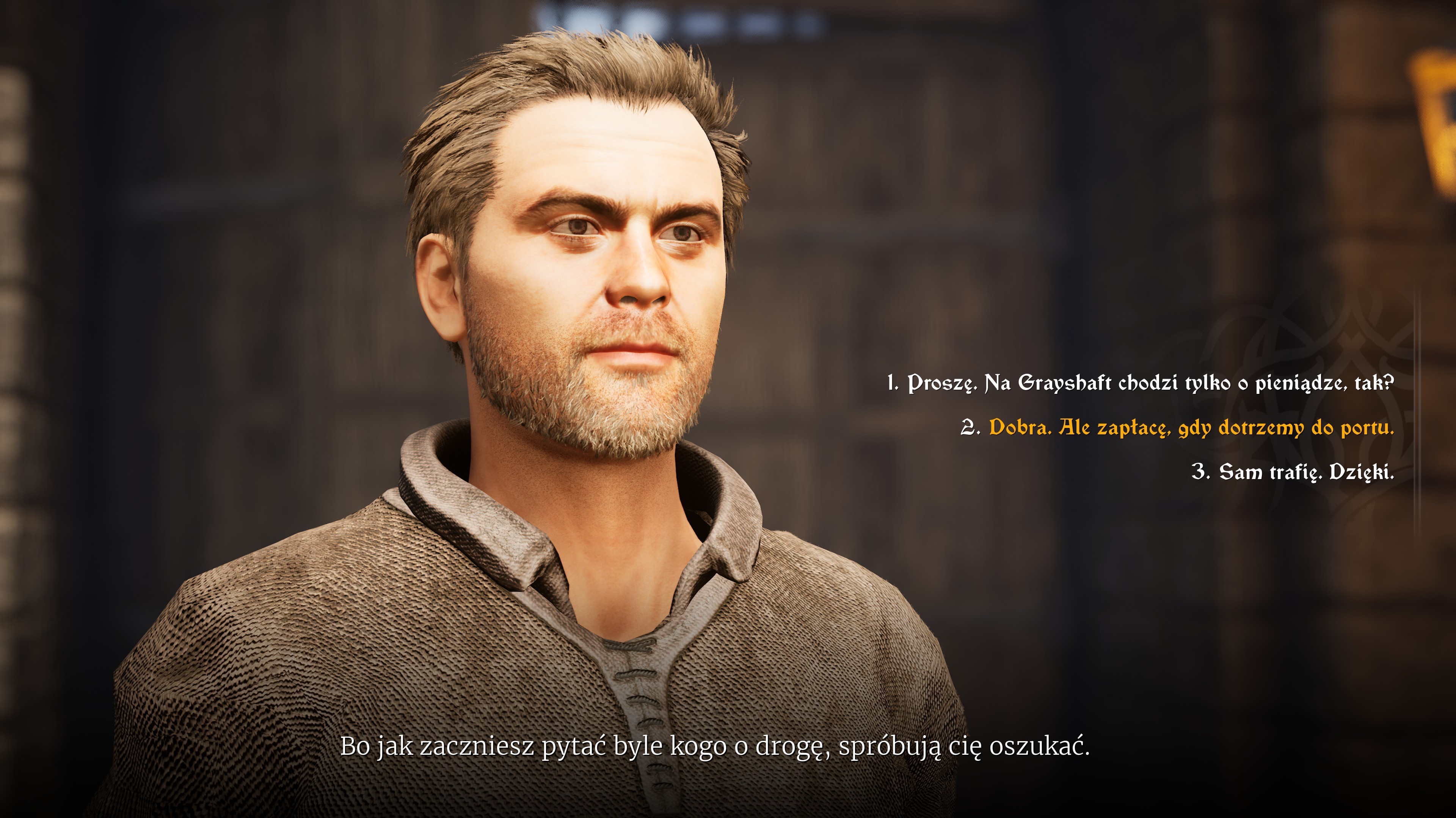 Wspomniałem na początku o kłodach rzucanych pod nogi. Ale tym razem już nie będę pisał o technikaliach, lecz właśnie rozgrywce i tym razem właśnie pozytywnie. Na pewnym etapie zabawy spotkałem NPC-a, który miał pokazać mi drogę do portu. Mogłem wybrać, czy zapłacę mu z góry, czy też dopiero po dotarciu do wyznaczonego miejsca. Decydując się na pierwszą opcję mężczyzna sprytnie odwrócił uwagę Tristana i uciekł z pieniędzmi, a biedny (dosłownie i w przenośni) kartograf musiał szukać portu na własną rękę. Innym razem natomiast z pewnym jegomościem polowaliśmy na łupy w wiejskich chatkach. Kiedy zebrałem, co trzeba, skurczybyk uwięził mnie i uciekł. Ale znalazłem go, uratowałem mu życie i mogliśmy albo podzielić się po połowie, albo też mogłem zgarnąć wszystko i posłać go do wszystkich diabłów.