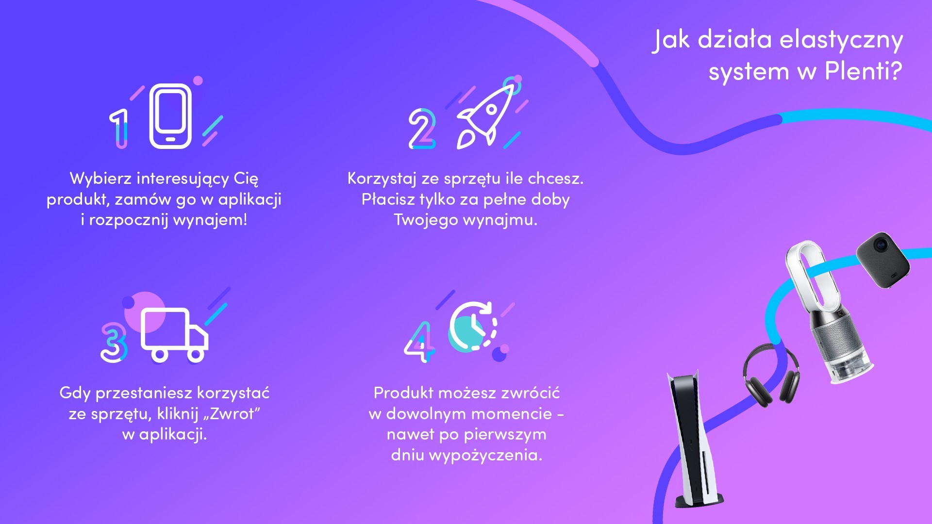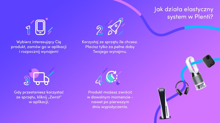 Samo korzystanie z Plenti jest niezwykle proste. Najlepiej zainstalować dedykowaną aplikację, a następnie po prostu wybrać interesujący nas sprzęt, wnieść stosowną opłatę i w zależności od miejsca zamieszkania nawet w kilka godzin otrzymać go do rąk własnych. Żadnych skomplikowanych umów, czy sztywnych deklaracji. Wypożyczony sprzęt można zwrócić bez żadnych negatywnych konsekwencji choćby i następnego dnia, jeśli okaże się, że nie spełnia naszych wymagań lub po prostu nam nie leży. Warto też pamiętać, że im dłuższy czas wypożyczenia sprzętu, tym niższa cena za kolejne dni jego posiadania.