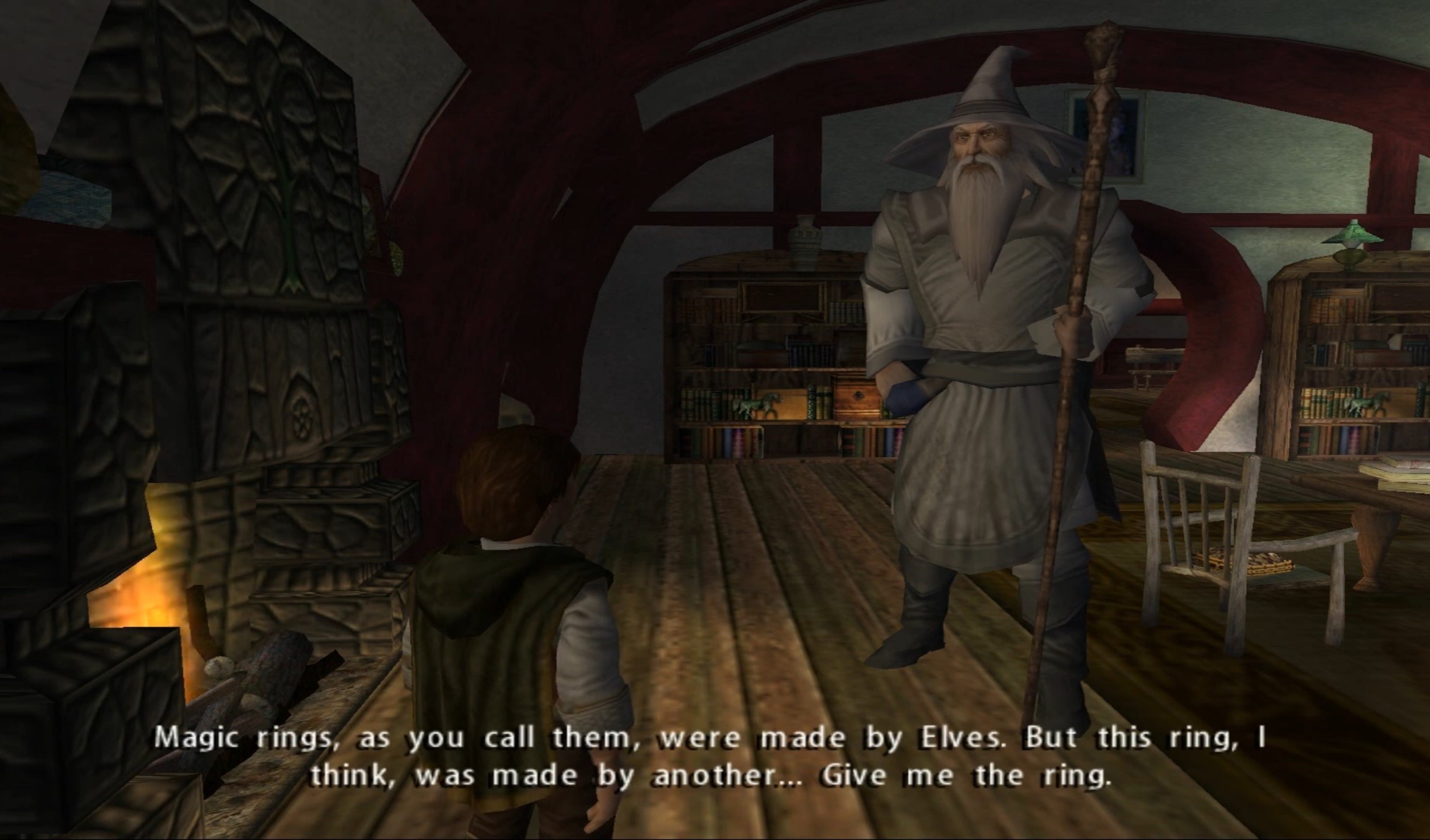 Zacznijmy od tego, że w tamtym czasie prawa do ekranizacji i prawa do gier znajdowały się w innych rękach niż prawa do książkowego pierwowzoru. Oczywiście nie porozumiano się na tym polu i to właśnie dlatego pierwsza growa część przygód Froda i spółki w 3D, oparta była bezpośrednio na powieści J.R.R. Tolkiena, a nie na kinowym widowisku. To oznaczało kilka istotnych rzeczy. Po pierwsze, gra nie korzystała z wizerunków aktorów znanych z filmu. Frodo nie miał twarzy młodziutkiego Elijah Wooda, Aragorn nie przypominał Viggo Mortensena, a Gandalf nie był cyfrową kopią Iana McKellena, co jak zapewne kojarzycie, zmieniło się w kontynuacji.