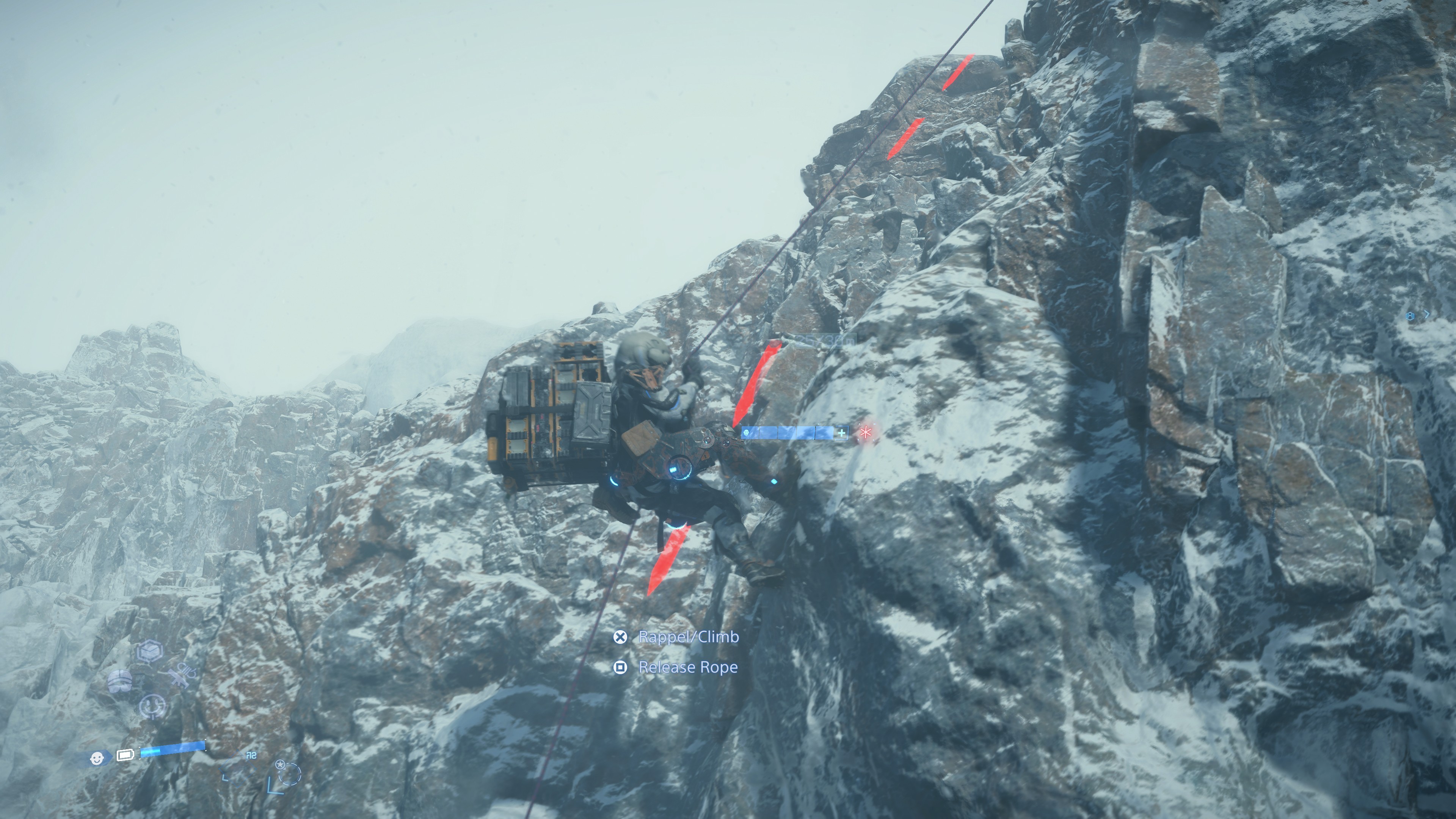 Nadal również warto spędzić trochę czasu na zwiedzaniu i dostarczaniu przesyłek do posterunków po to, aby zdobyć wyposażenie wyższego poziomu, które będzie efektywniejsze, może momentami również lżejsze do przenoszenia. Ewentualnie zebrać barwniki do malowania pojazdów czy kombinezonów Sama. Tak samo jak po to, aby rozwijać umiejętności Sama na podstawie tego, jak gramy w Death Stranding np. z jakiegoś powodu mój bohater miał bardzo wysoki poziom kondycji i korzystania z lekkiego karabinu maszynowego.