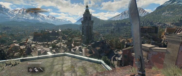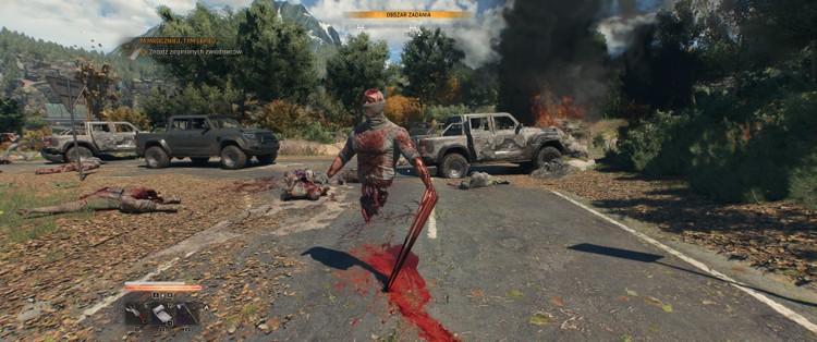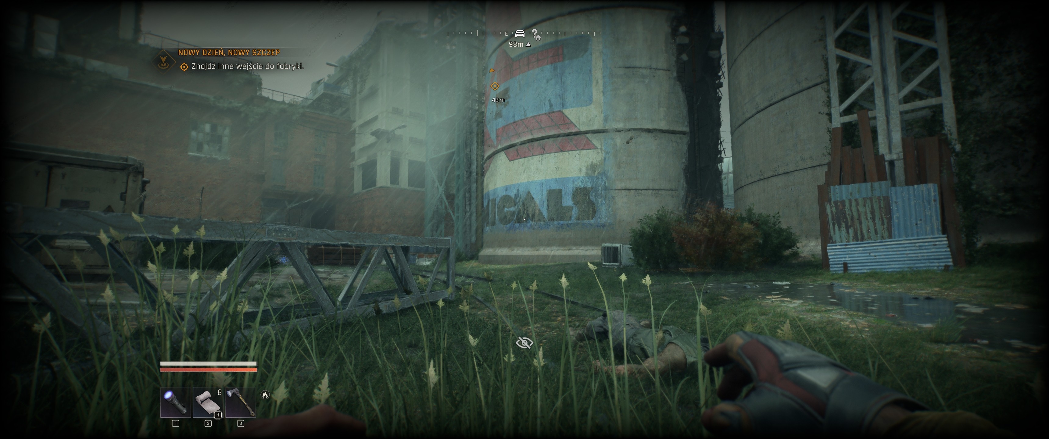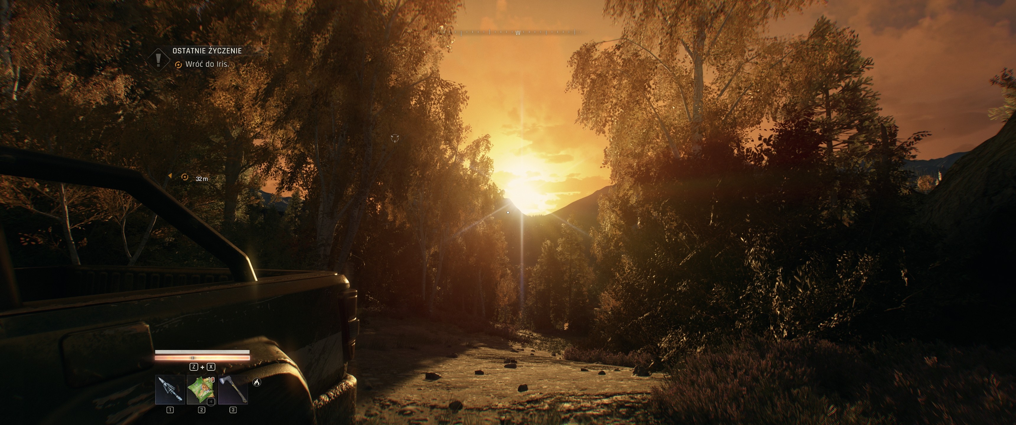 Kto nie ma prawka, ten musi mieć w nogach, bo odległości między etapami misji bywają czasem spore. I tu do dyspozycji, poza klasycznymi ruchami parkourowymi, dostajemy w pewnym momencie znaną już kotwiczkę z linką. Ma to sens, bo jednak więcej tu drzew, niż budynków. Odrobina wprawy i możemy poruszać się po okolicy jako techno-tarzan całkiem sprawnie i szybko. Zawiedzeni mogą być natomiast fani czystego parkouru, bo okolica nie sprzyja tak spektakularnym akcjom, jak w dwójce. W ogóle odniosłem wrażenie, że do tego aspektu nie przyłożono się na maksa. Z DL2 pamiętam do dziś tę oszałamiającą płynność i wręcz niebywałe zacięcie z jakim skakałem, ślizgałem się i biegałem po ścianach biorąc udział w wyzwaniach. Tutaj jest jakoś tak… topornie. Niby podobnie, niby z podobnym zakresem ruchów, dostępnych już na starcie gry, ale zupełnie bez tego magicznego “flow”. Dlatego wybierałem samochód. Szkoda.