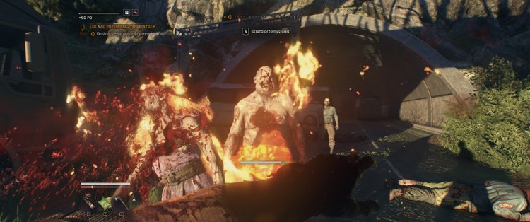 Jak natomiast reszta wrogów? Otóż miałem wrażenie, że w Dying Light 2 byli jacyś tacy sprytniejsi. Kiedy do nich strzelałem z łuku, to się chowali, po dwóch ciosach potrafili uniknąć trzeciego i nie szli jak barany na rzeź. A tutaj to różnie z tym bywało. O ile zarażeni asami taktycznej błyskotliwości mogą nie być, o tyle uzbrojeni w broń palną najemnicy, wyłażący mi pod lufę zza bezpiecznych przeszkód, byli już pewnym zaskoczeniem. No i hybrydy, które z uporem maniaka potrafiły atakować przez elementy otoczenia, wystawiając się na kilka darmowych lepów. Coś tu poszło nie tak. Ja też kilka razy sam się podpaliłem koktajlem Mołotowa, ale hej! Ja jestem Crane, ja mogę!