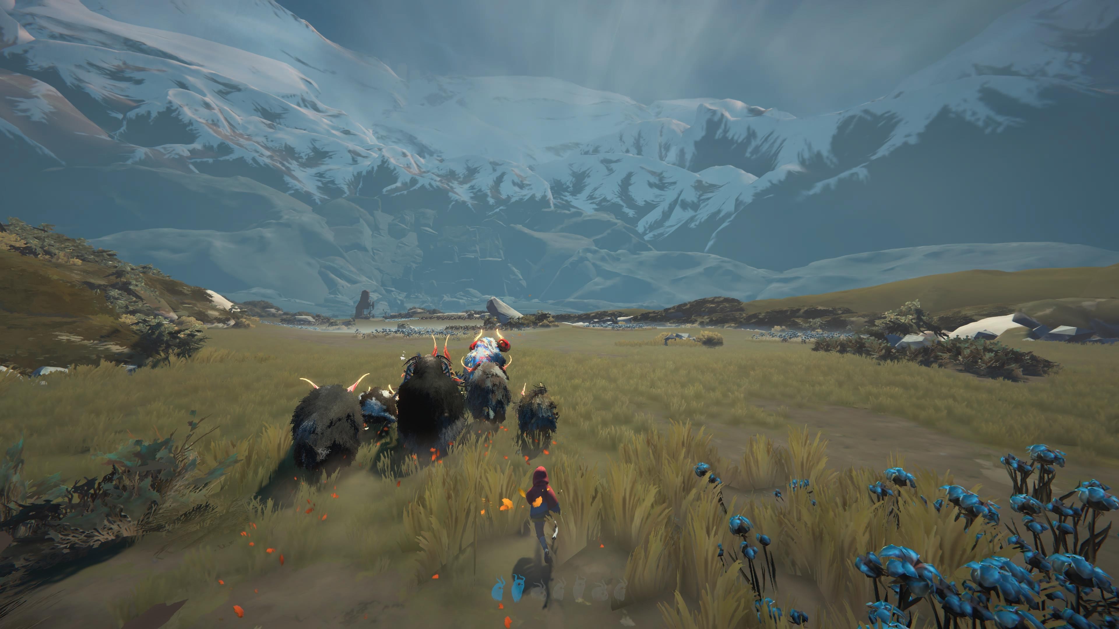 Na tym mógłbym zakończyć, bo Herdling nie oferuje absolutnie nic więcej. Większość rozgrywki stanowi prowadzenie stada. Tylko czasami trzeba otworzyć jakąś bramę czy wykonać absolutnie banalną zagadkę środowiskową. Oczywiście są inne mechaniki. Znajdujemy elementy ubioru, którymi możemy upiększać zwierzaki. Możemy je też głaskać czy karmić, co czasami, przy drobnych obrażeniach, przywraca im zdrowie. Problem w tym, że to wszystko są drobiazgi, które stanowią raczej dekorację, a nie główny składnik dania. FAR, mimo że sam poziomem rozbudowania nie grzeszył, był bez wątpienia nieco bogatszą w gameplay grą. Mimo zmiany perspektywy mam wrażenie, że studio Okomotive wykonało krok wstecz. To też sprawia, że momentami lekko się nudziłem.