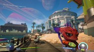 Jest jeszcze jeden element gry, który jest moim zdaniem wielkim problemem, zwłaszcza biorąc pod uwagę jak dużym sukcesem było pierwsze High on LIfe. Mimo możliwości, jakie się pojawiły, zespół Squanch Games nie włożył zbyt wiele wysiłku w to, aby ich kolejna gra wyglądała ładnie. Progresu względem pierwszej części za bardzo nie ma. Co więcej, High on Life 2 wygląda po prostu brzydko. Nie jestem fanem kierunku artystycznego, bo dla mnie ta gra jest zbyt pstrokata. To jednak kwestia gustu. Obiektywnie jednak jakość tekstur jest na niskim poziomie. Nawet mimo to w kilku momentach zaobserwowałem spadek płynności animacji (testowałem wersję na PS5). Mam wrażenie, że ta gra jest mało wyrazista, jakby w zbyt niskiej rozdzielczości. Nie wygląda to zbyt dobrze.