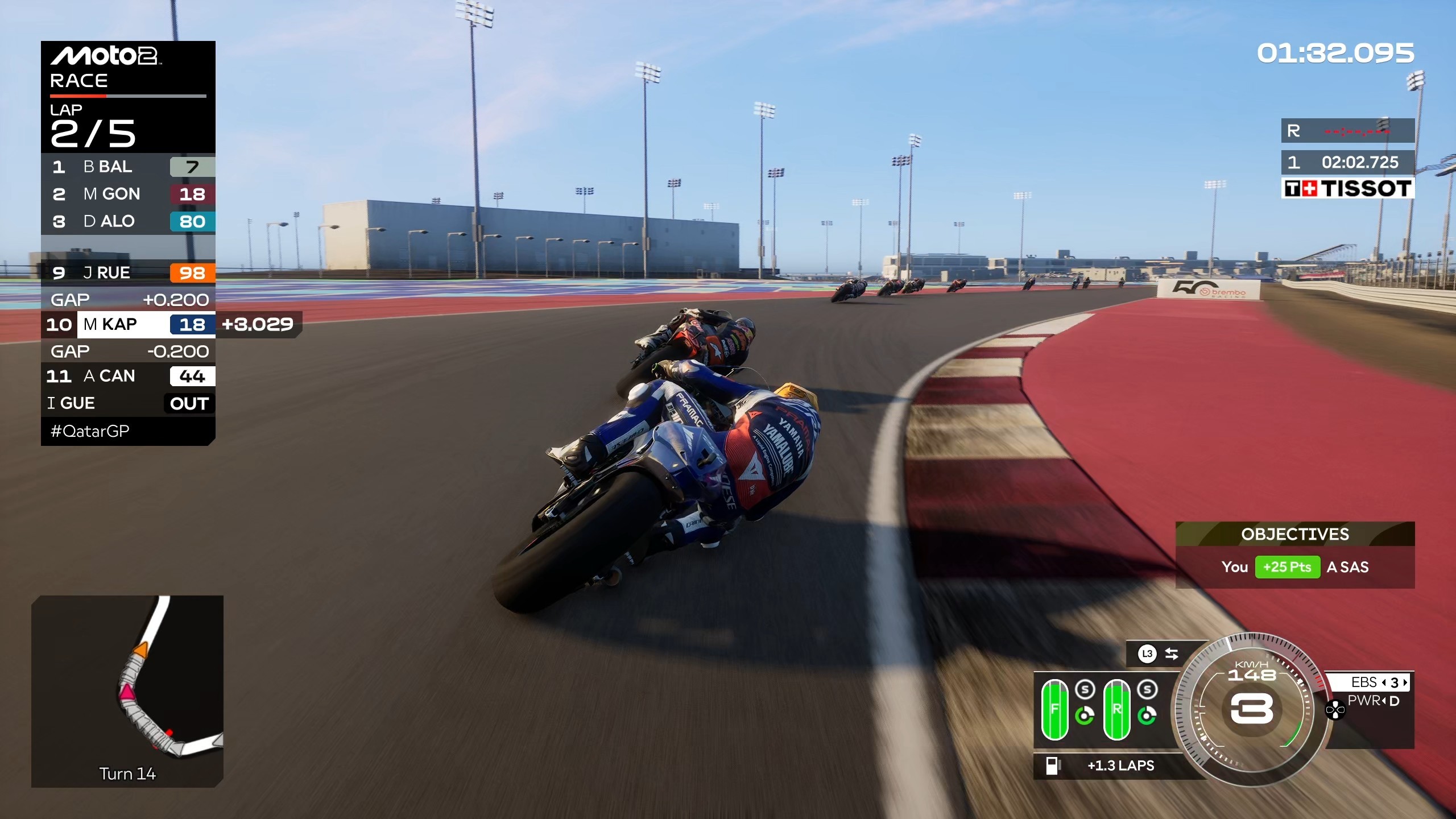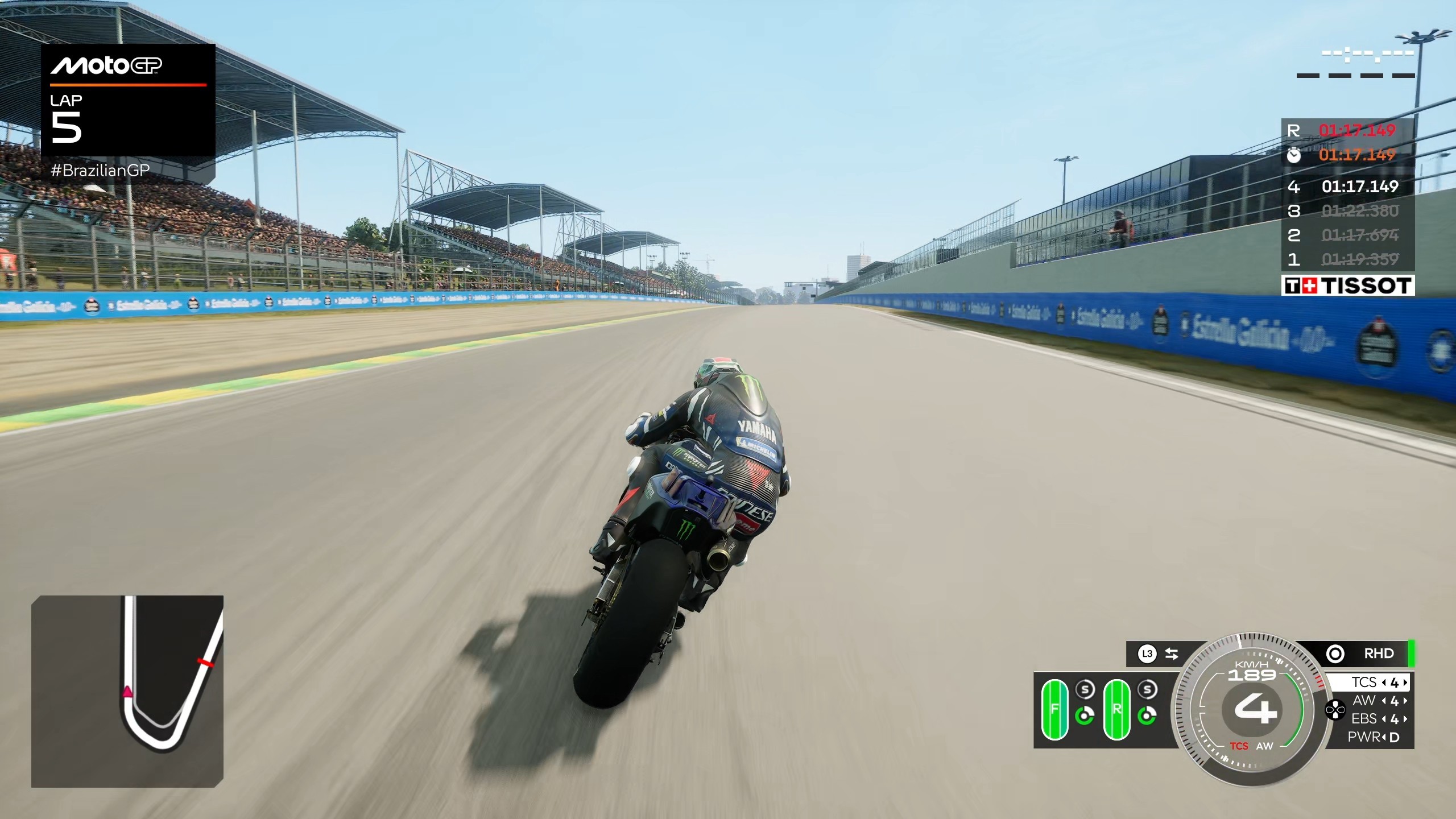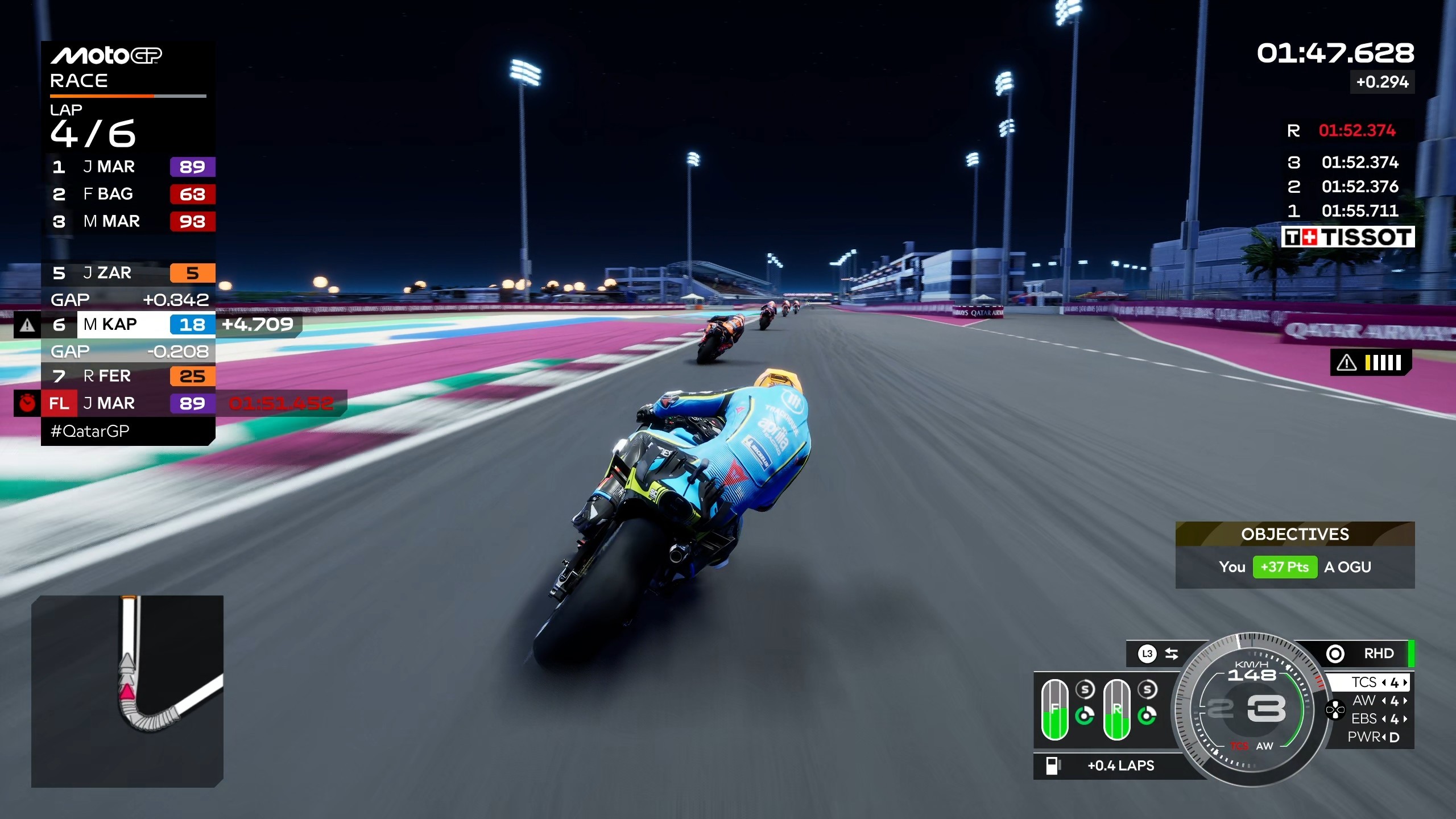 Mogę pochwalić poziom trudności SI, zwłaszcza na najwyższym poziomie, kiedy to potrafią zapewnić kawał dobrego ścigania i bezpośredniej walki. Dodatkowo ich jazda została znacząco poprawiona od wersji preview, gdzie jeździli gęsiego. Teraz ściganie z botami wygląda znacznie bardziej naturalnie. Niestety i na tym polu MotoGP zalicza regres względem 25, ponieważ kolizje z rywalami są bardzo nierówne. Czasem motocykle potrafią delikatnie przeniknąć przez siebie, by innym razem odbić się od kogoś, mając do niego jeszcze z pół metra pustej przestrzeni. Są to jednak sporadyczne przypadki i na ogół jest dobrze, ale jednak - pojawiają się, więc muszę o nich wspomnieć wspomnieć. Sędziowie radzą sobie coraz lepiej z każdą częścią i sensownie rozstrzygają wydarzenia na torze, więc zawsze to jakiś plusik dla fanów uczciwego ścigania z botami. Niestety nie rozumiem całkowitej rezygnacji z ustawień map. Tzn. możemy wybrać dwie – wet i dry, ale one i tak ustawiają się automatycznie do odpowiednich warunków pogodowych, a paliwa zawsze starczy na cały wyścig, więc tak naprawdę cały system jego zużycia, który miał sens w poprzednich częściach, teraz jest kompletnie zbędny. Cokolwiek nie zrobimy to i tak nie będziemy musieli martwić się o brak płynu w zbiorniku, nawet w trybie kariery przy nierozwiniętym motocyklu, tak więc po co w ogóle opcja przełączania tego? Nie wiem.