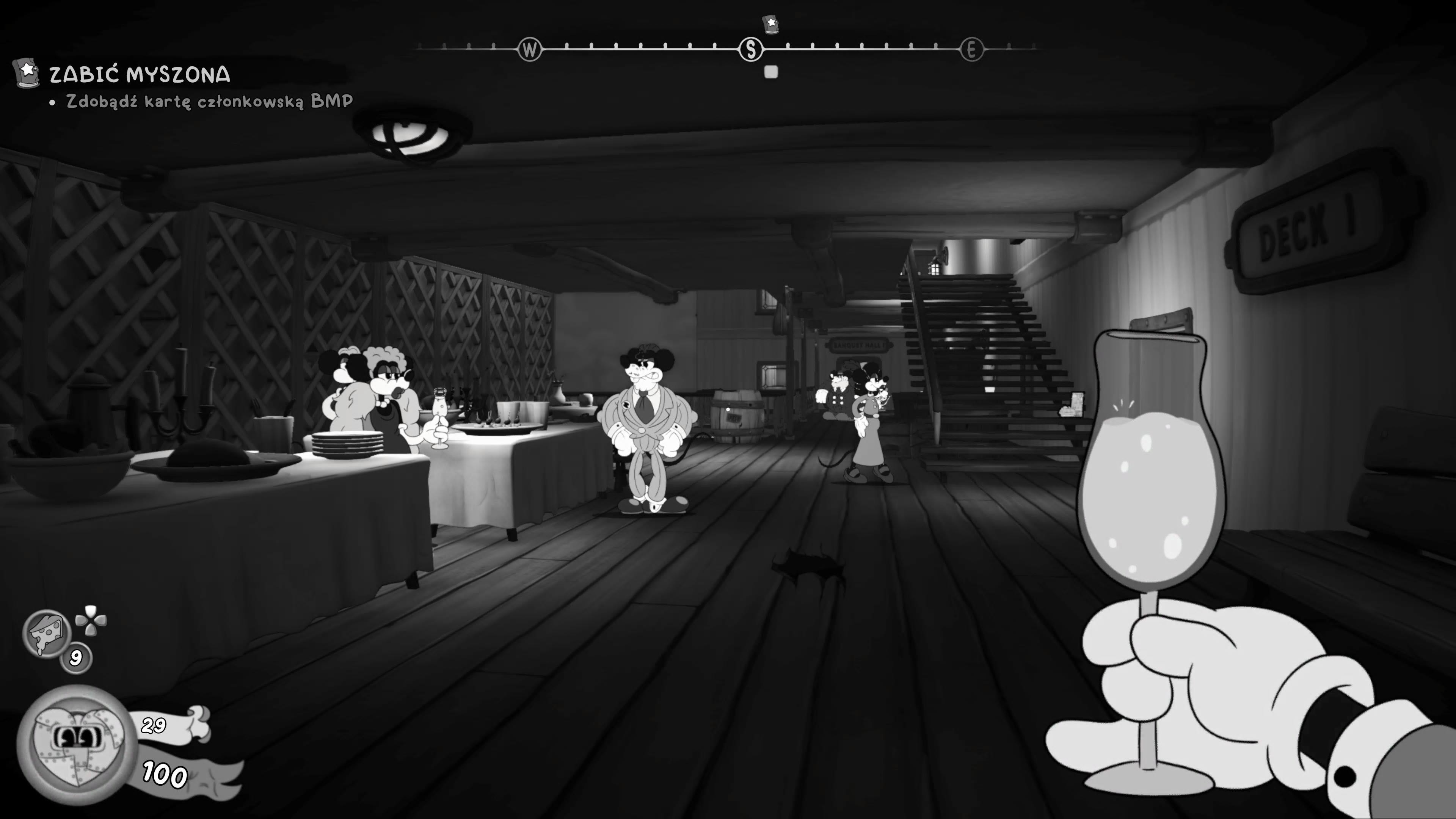 Połowa recenzji, a my nie poruszyliśmy tematu tego, co rozpoczęło wielką popularność Mouse, a więc stylu artystycznego. Lekko obawiałem się, że czarno-biała grafika może być na dłuższą metę nieco męcząca. Niepotrzebnie, bo stylistyka szybko wpada w oko i nie nudzi do samego końca. Na jej siłę wpływają też świetne, kreskówkowe animacje, a także duża różnorodność lokacji. Gra ma bardzo dużo misji, a więc odwiedzimy praktycznie wszystko, co ciekawe w mieście – operę, bagna, port, magazyny, posiadłość na obrzeżach, studio filmowe czy cyrk. Trudno więc się nudzić, zwłaszcza że każda z miejscówek wypełniona jest po brzegi szczegółami.