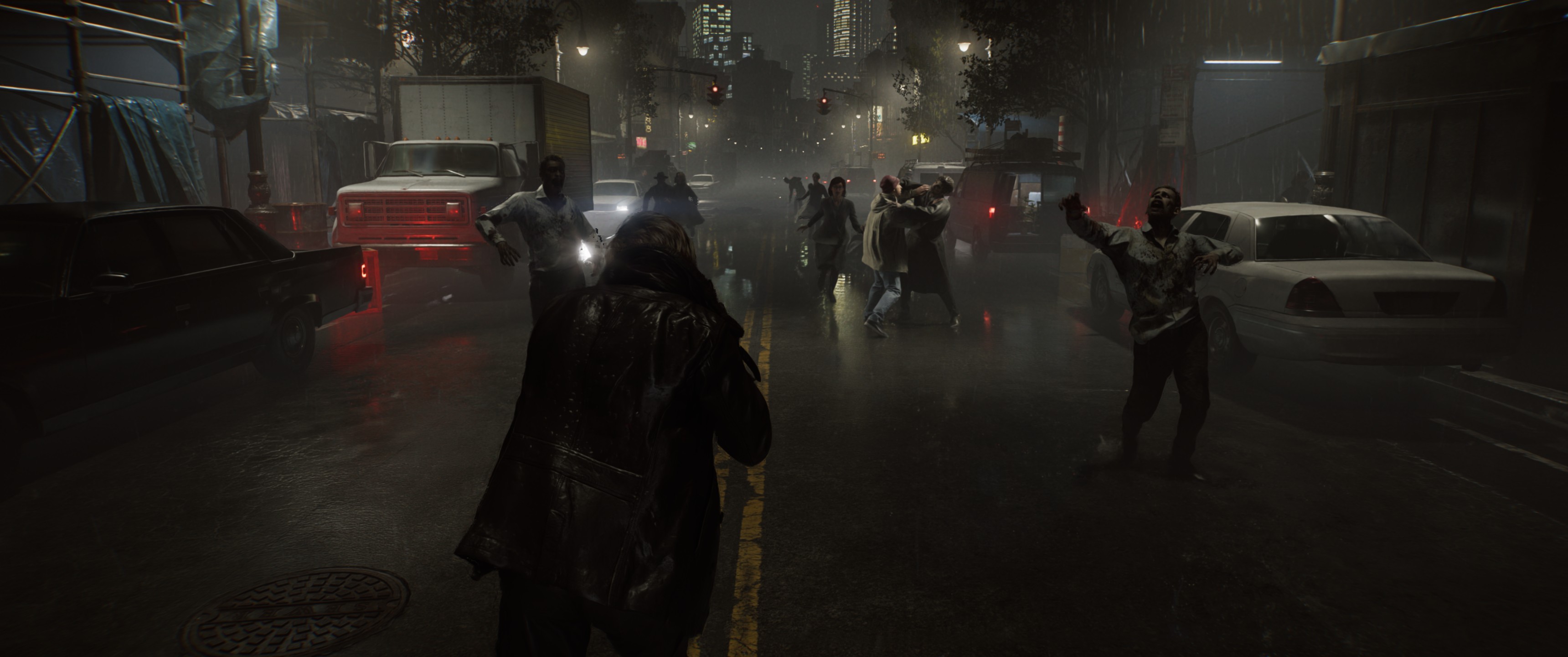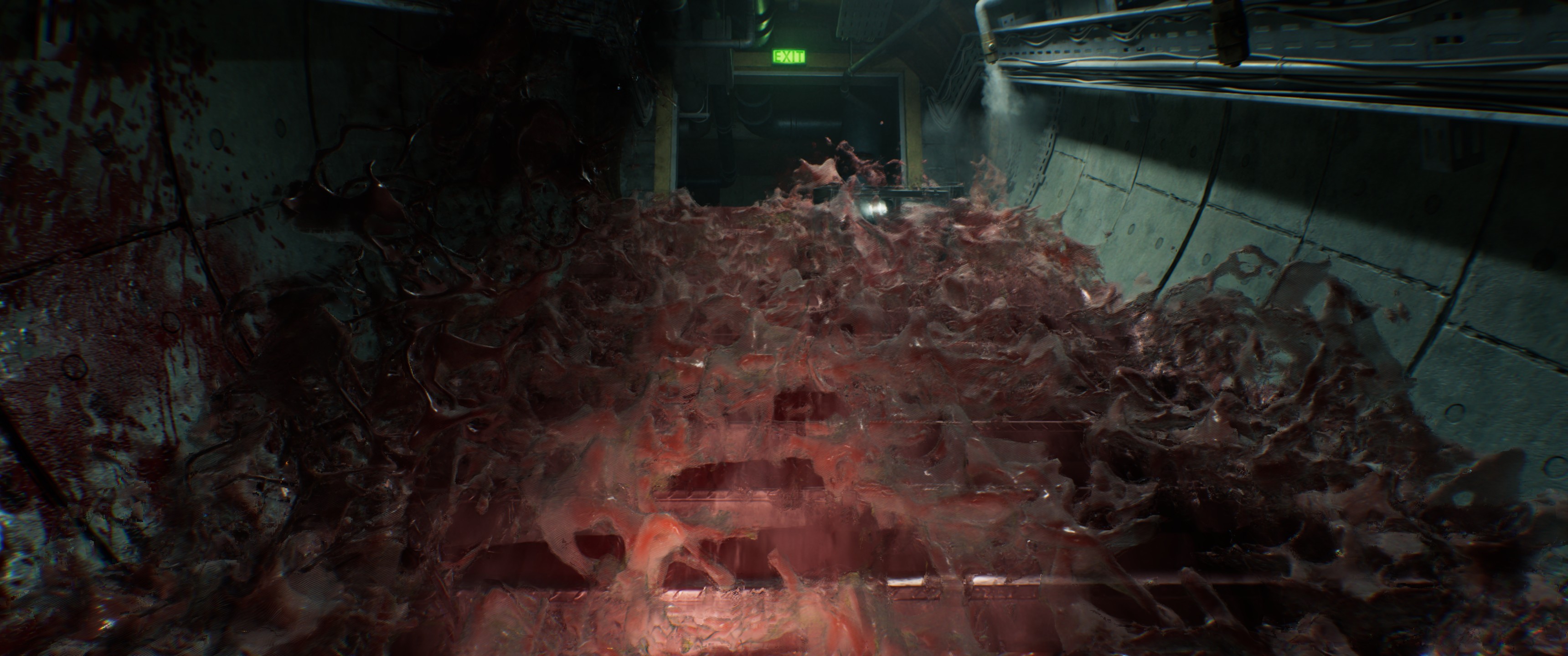 Gra jest ładna. Całkiem. Ma swoje niedoskonałości, czasem trafi się na zbliżeniu jakaś mniej fajna tekstura, a różne lejące się i tryskające mazie wciąż wyglądają jak efekty sprzed kilku lat, ale ogólnie jest naprawdę świetnie. Modele są pełne szczegółów, animacje rewelacyjne i bardzo bogate (każdy model broni ma charakterystyczne przeładowanie i sprawdzenie stanu amunicji), a otoczenie bogate w smakowite lub obrzydliwe detale. Bardzo mocno gra też tutaj światło, zwłaszcza ciemność bywa bezkompromisowa, zaprawdę powiadam wam, dla takich gier warto kupić OLED-a. Największym minusem jest chyba tylko fakt, że o ile podczas rozgrywki gra ogarnia bez problemu monitor panoramiczny, o tyle we wszystkich przerywnikach fabularnych, czy w menu mamy obraz przycięty do proporcji 16:9. Psuje to jednak czasami nastrój tymi czarnymi pasami z boku, o choćby Warhorse w KCD2 pokazał, że można to zrobić elegancko.
