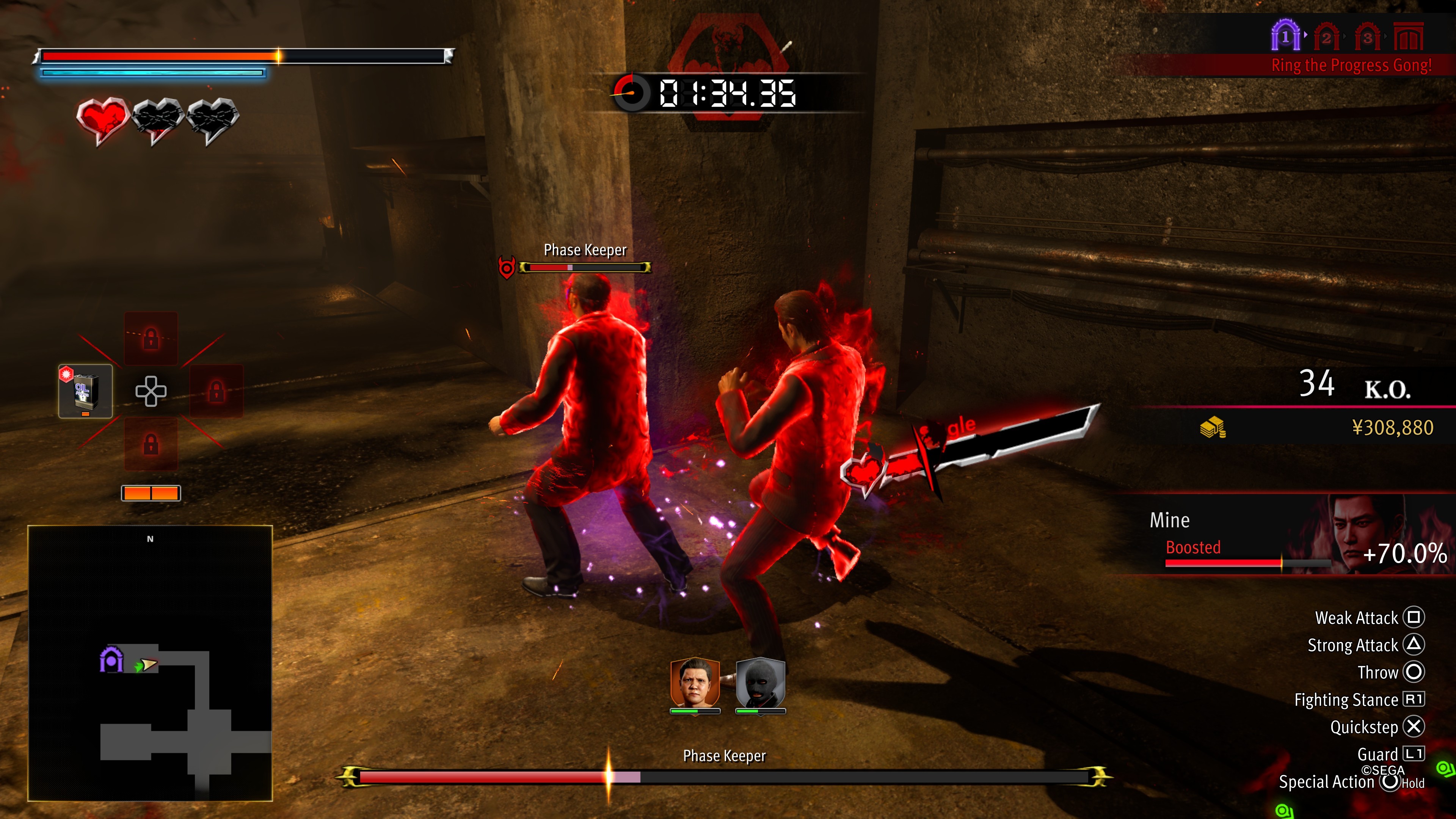 I tutaj nie zaskoczę nikogo tym, że tak naprawdę przyglądając się Dark Ties z daleka, to otrzymujemy zasadniczo to samo, co w przypadku Yakuzy Kiwami 3 z kilkoma różnicami tak, aby pasowało to wszystko do obrazka. Wiele elementów takich jak chociażby polowanie na oprychów w Kamurocho (po to, aby pokazać, że Kanda to dobry człowiek jest!) to właściwie przeniesienie modułu Reaperów z Kiwami 3. Z drugiej strony zamiast Purgatory otrzymujemy Hell’s Arena, które obok tradycyjnego ringu oferuje coś na kształt labiryntu – przebijamy się w nim przez kolejne poziomy poszukując wzmocnień, nowych broni oraz pieniędzy.