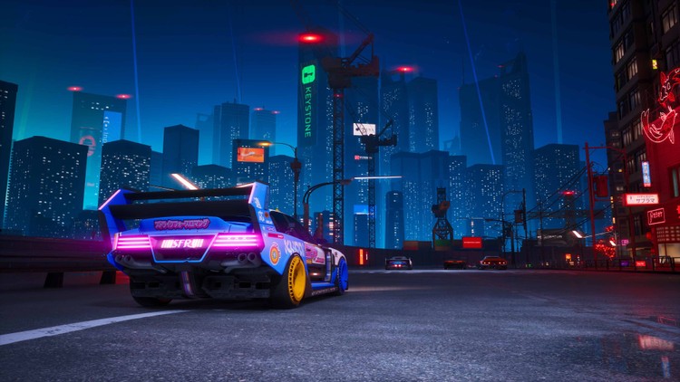 Takie podejście sprawiło, że nowy Screamer to nie tylko zwykłe wyścigi zręcznościowe, ale całkiem nieźle przemyślana produkcja, której jednym z elementów jest zarządzanie zasobami, ale do tych wrócę nieco później. Trafiamy do futurystycznego i obłędnie wyglądającego nocą miasta, gdzie walczą ze sobą gangi z konkretnymi bohaterami w składzie. Wszyscy biorą udział w zawodach zorganizowanych przez tajemniczego, zamaskowanego jegomościa. Bardzo spodobało mi się to, że każdy z bohaterów ma swoją historię, motywację do ścigania, a także własny samochód, który posiada inne statystyki. Oznacza to, że warto przemyśleć swój wybór przed wyścigiem, ale to też nie jest tak, że nie da się wygrać czymkolwiek – da się, ale na niektórych trasach trzeba będzie trzeba dać z siebie więcej. Tutaj zaznaczę, że liderzy gangów posiadają najlepsze samochody, których prędkość zmusiła mnie do wyciśnięcia z siebie maksimum koncentracji i precyzji. Przy okazji, wszystkie samochody zostały od zera zaprojektowane przez Włochów, ale i tak przy niektórych z nich czuć był inspirację prawdziwymi pojazdami.