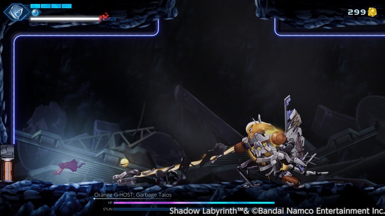 Jak nietrudno się domyślić, w Shadow Labyrinth konfrontujemy się nie tylko z szeregowymi przeciwnikami, ale i potężnymi bossami. O ile w pierwszym przypadku trudno grze cokolwiek zarzucić, o tyle w drugim sprawa ma się nieco inaczej. Już w pierwszych wrażeniach z rozgrywki pisałem o irytujących hitboxach z nadzieją, że ten element zostanie dopracowany wraz z premierą finalnej wersji. Tak się niestety nie stało, w efekcie czego bossowie mogą zadawać obrażenia na przykład w trakcie odskoku od naszego bohatera. Wykonanie przewrotu w kierunku znajdującego się nieopodal monstrualnego wroga także doprowadza do sytuacji, w której także tracimy nieco punktów zdrowia.