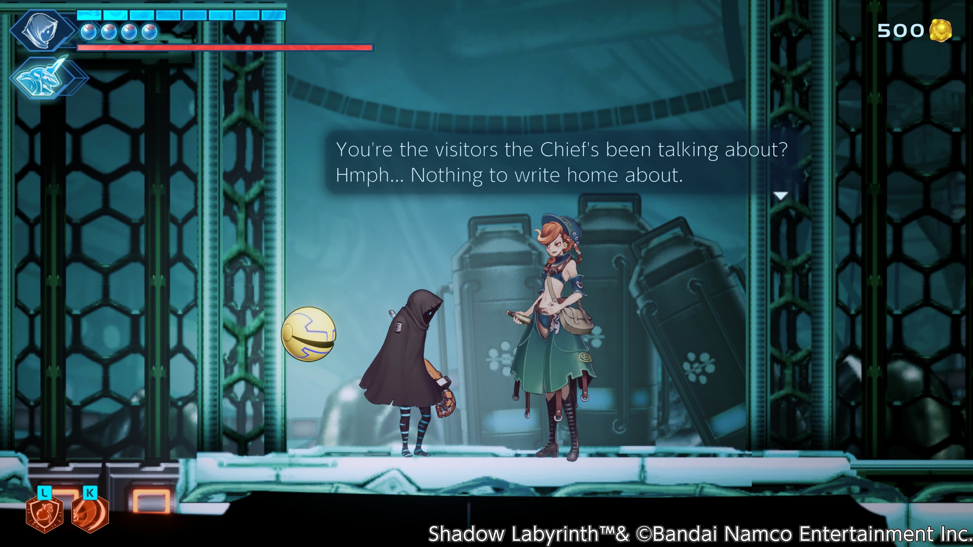 Znacznie lepiej wypada natomiast udźwiękowienie. Shadow Labyrinth oferuje utrzymany w elektronicznym, nieco ambientowym stylu soundtrack, a tempo utworów dostosowuje się do tego, co aktualnie dzieje się na ekranie. I znów wracamy do tego, że gra została stworzona przez tak wielką firmę jak Bandai Namco. Dlaczego więc nie mamy tutaj pełnego voice-actingu? Postacie komunikują się głównie za pomocą krótkich efektów dźwiękowych i tekstu, co w przypadku PUCK-a sprawdza się zaskakująco dobrze, ale inne postacie mogłyby wypowiadać się pełnymi zdaniami.