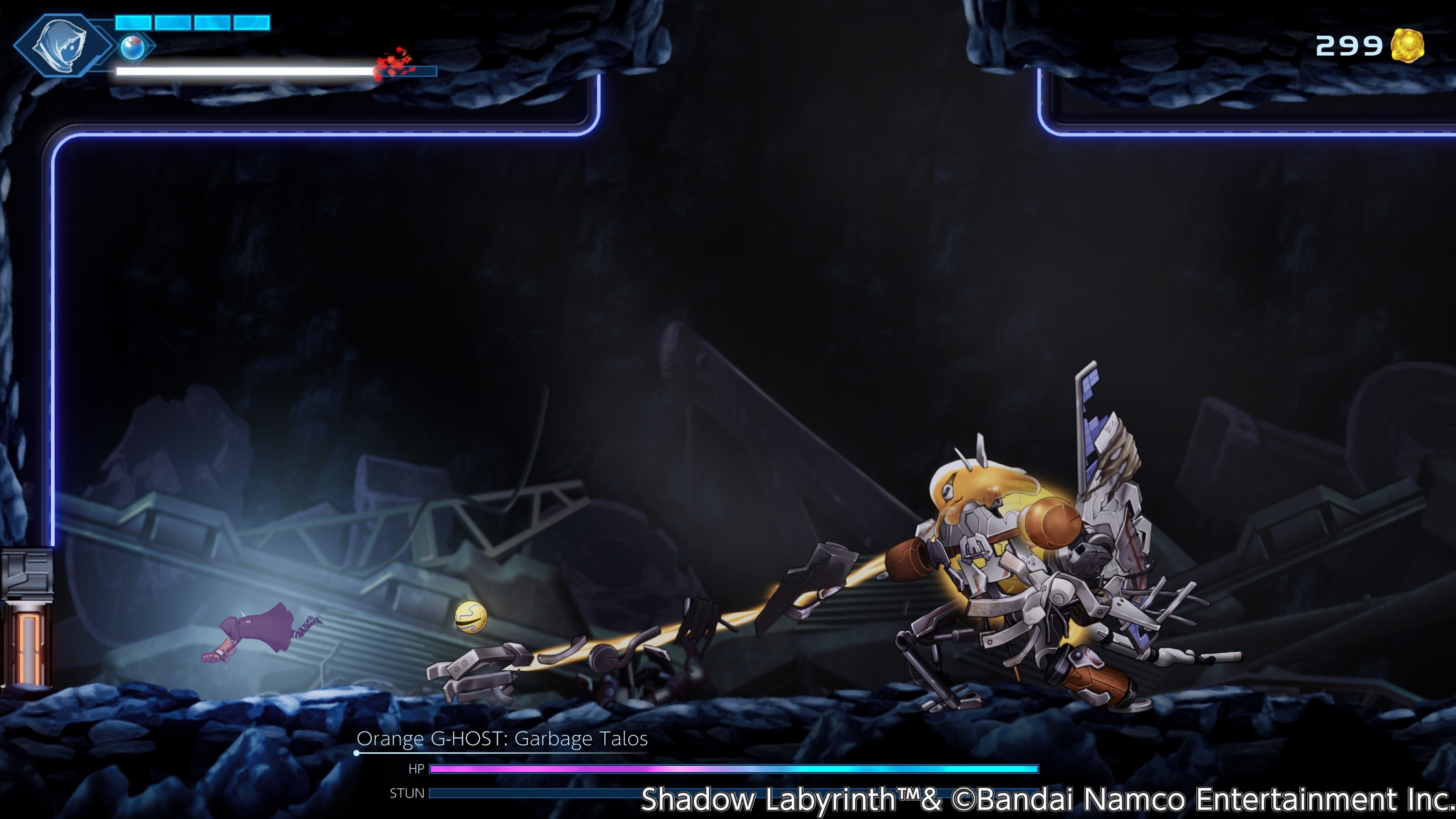 Ciekawym urozmaiceniem starć z przeciwnikami jest system GAIA. Po napełnieniu specjalnego paska możemy zmienić się w potężnego mecha, który przez mniej więcej pół minuty jest niezniszczalną maszyną do zabijania. Shadow Labyrinth udowadnia więc po raz kolejny, że jest grą z ciekawym pomysłem na siebie, ale realizacja miejscami pozostawia wiele do życzenia. I nie - nie narzekam na system GAIA. Narzekam na to, o czym wspomniałem w poprzednich akapitach, a więc na hitboxy czy też system odpowiedzialny za zapisywanie stanu rozgrywki.