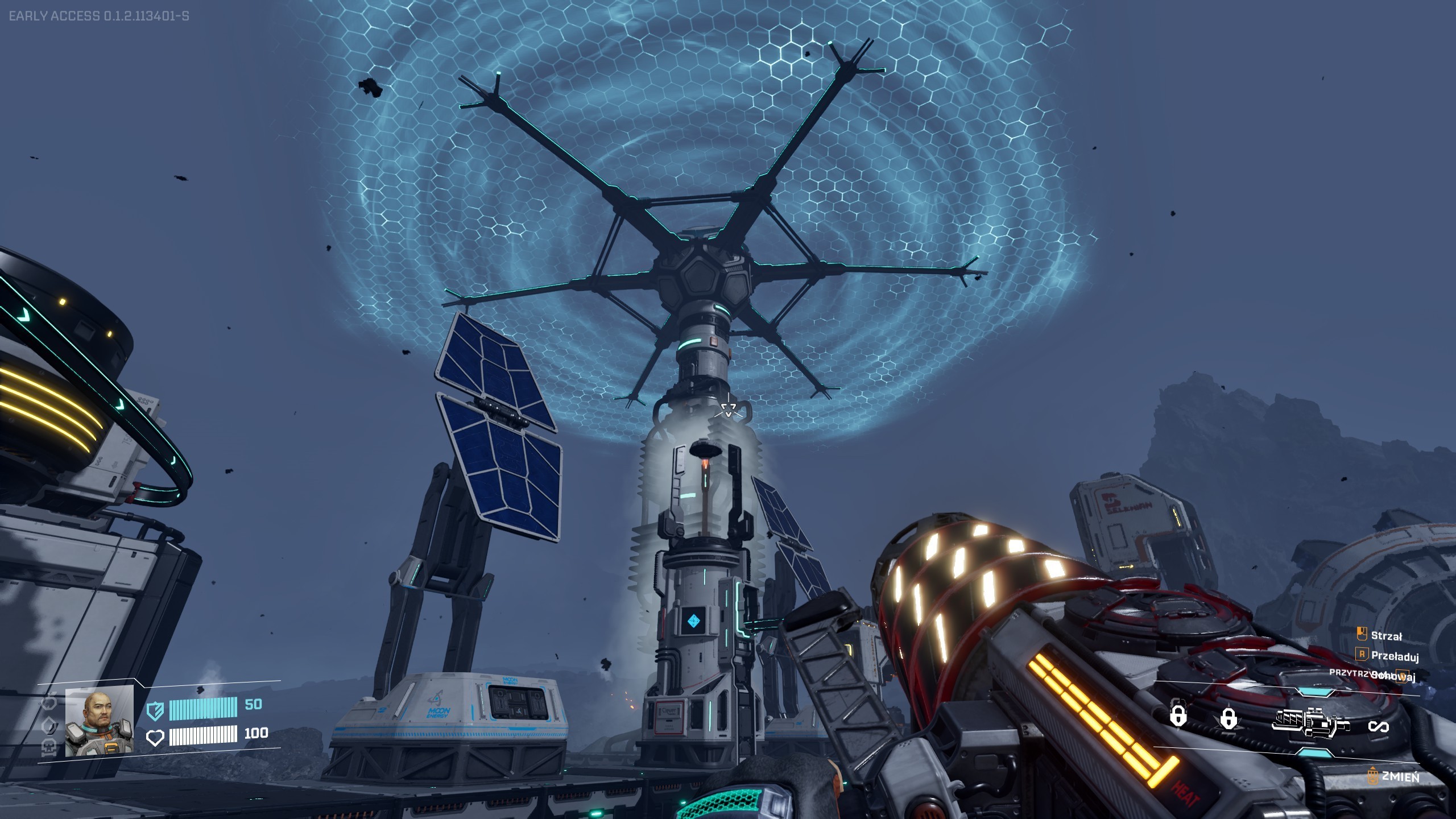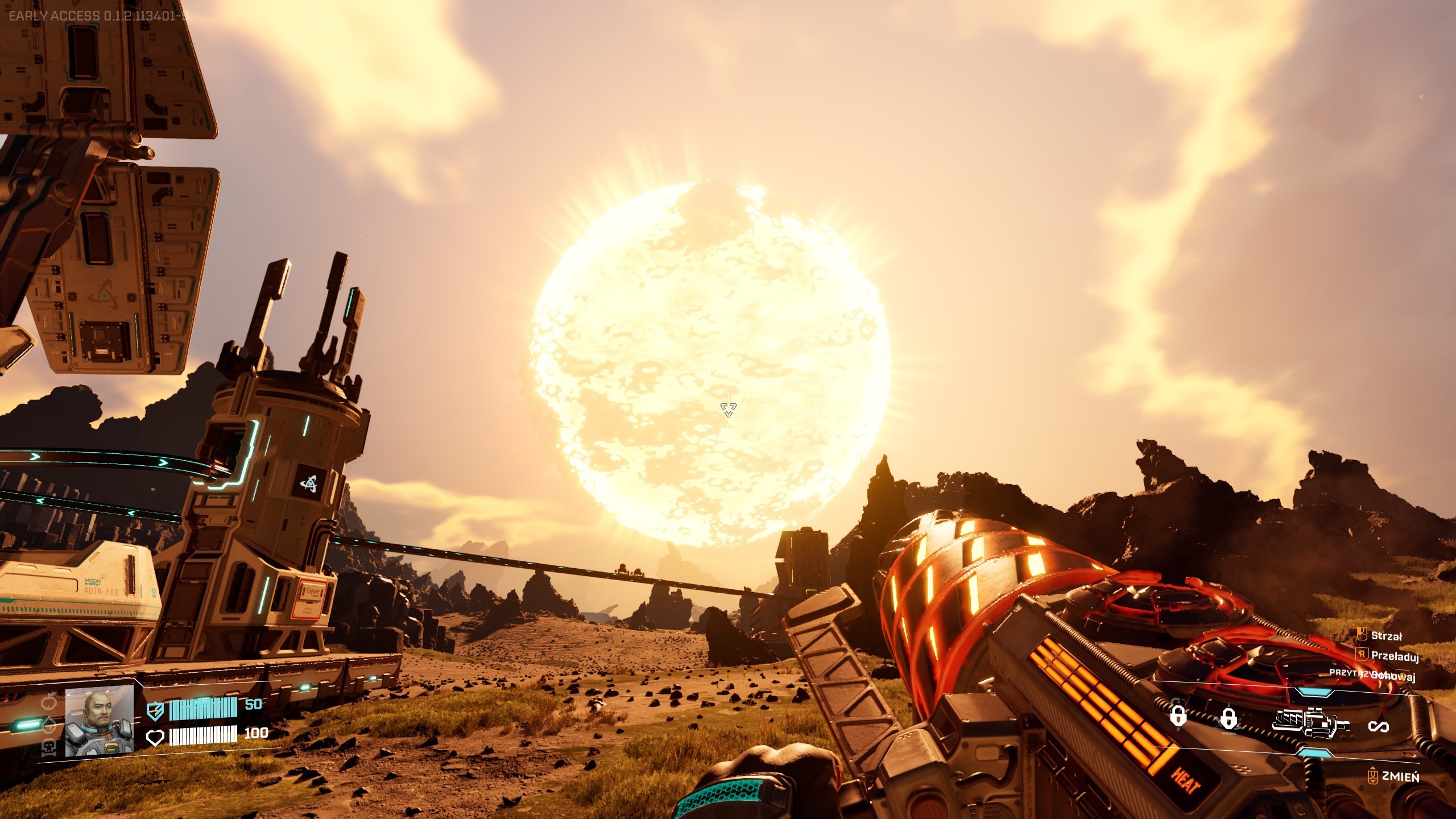 No właśnie - broń palną, a w zasadzie kilka jej rodzajów, bo w StarRupture oprócz zwykłego pistoletu będziemy mogli odblokować również dwa karabiny maszynowe oraz granat. Poszczególne rodzaje broni są świetnie wykonane, mają kompletnie inny odrzut, oferują możliwość strzelania z biodra oraz z wykorzystaniem celownika. Szkoda tylko, że na ten moment same starcia z wrogami nie są zbyt angażujące ze względu na stosunkowo niski poziom trudności. Sztuczna inteligencja komputerowych robali także pozostawia nieco do życzenia, bo ewidentnie kierują się one po prostu w stronę wystrzeliwanych przez nas pocisków. Aha - jeszcze jedno - już teraz możemy odpierać ataki obcych nie tylko w sposób bezpośredni, ale także pośrednio, stawiając wieżyczki obronne na terenie naszej bazy.