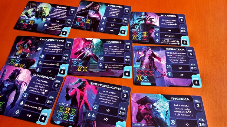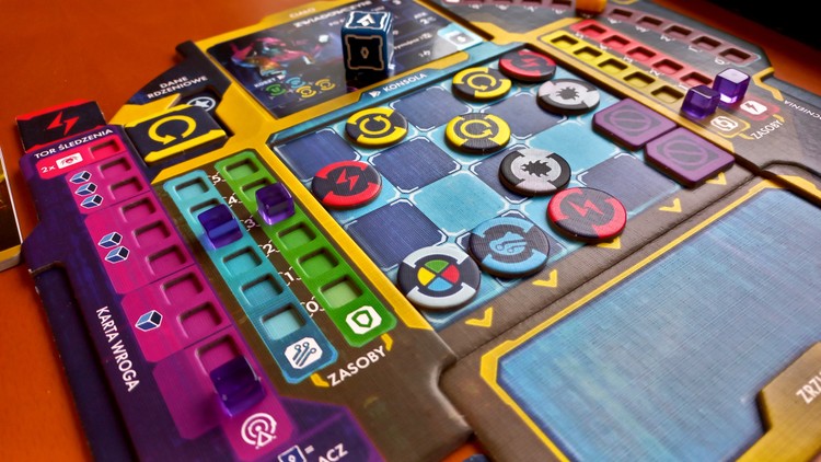 Podstawowe wzorce zakładają ułożenie trzech żetonów jednego koloru w linii. W ten sposób zdobywamy zasoby: rozwój, tarczę, przerzut i dodatkowe kości w walce. Starcia są tu elementem nieuniknionym, choć nie dochodzi do nich w każdej rundzie. Wraz z upływem rozgrywki na stole pojawią się rozmaite karty (wrogów, scenariusza czy umiejętności naszych postaci), które pozwolą wykorzystywać inne układy żetonów z naszej konsoli. Trzeba się zatem dobrze zastanowić, które sekwencje traktować priorytetowo. I które w ogóle są możliwe do ułożenia. Żetonów nie możemy bowiem przesuwać w nieskończoność - mamy na to określoną przez nasze ciało liczbę kroków.