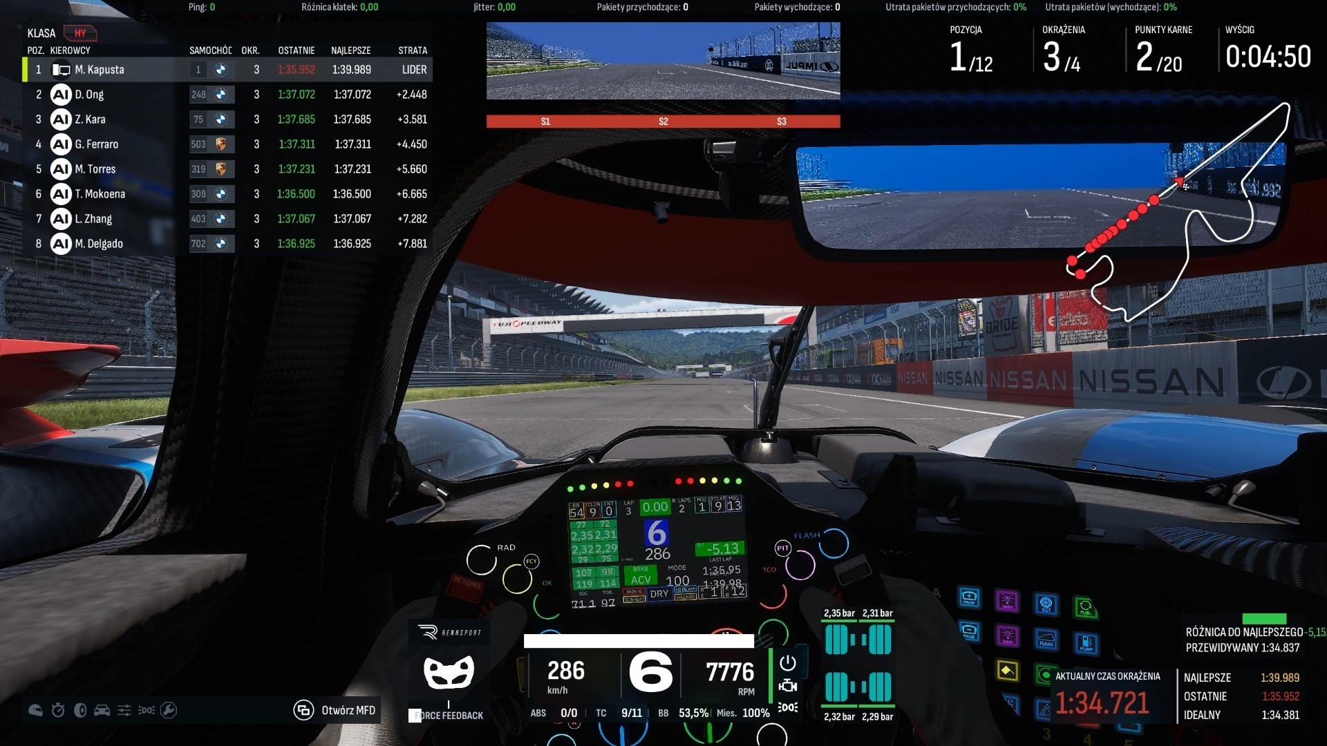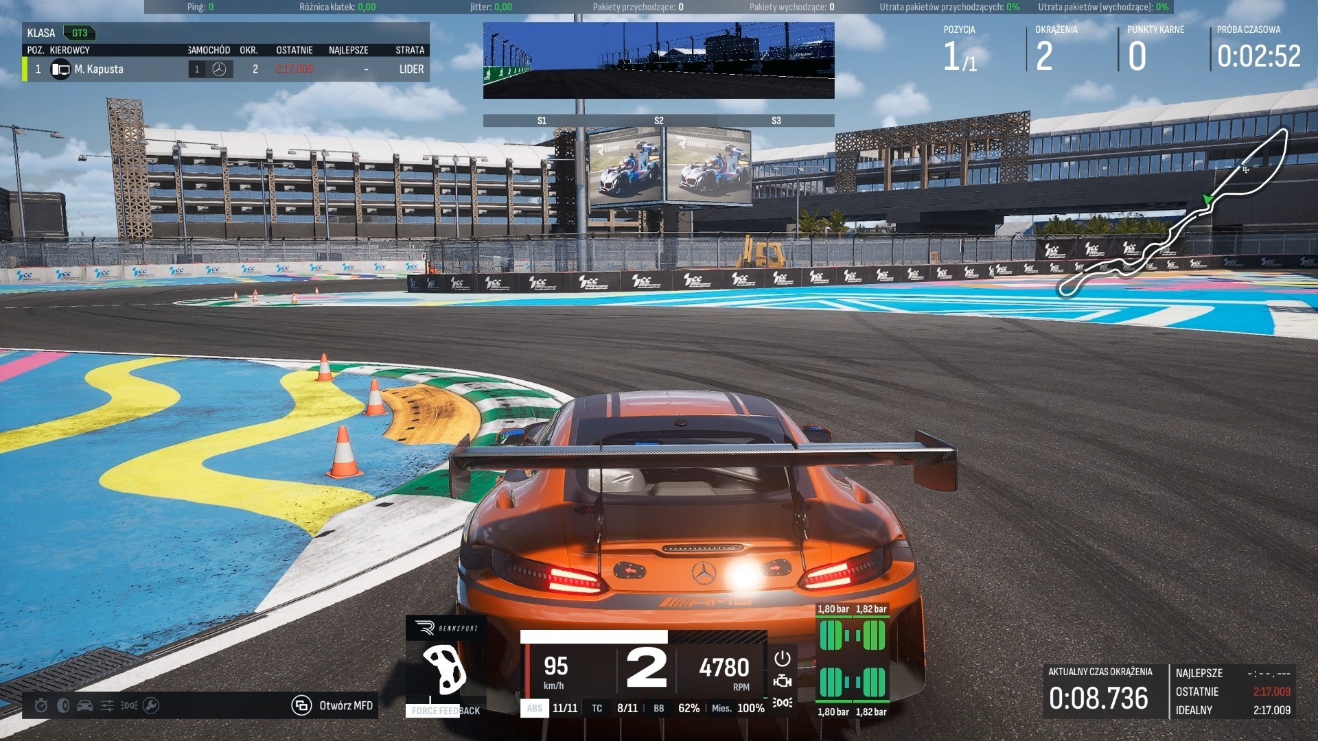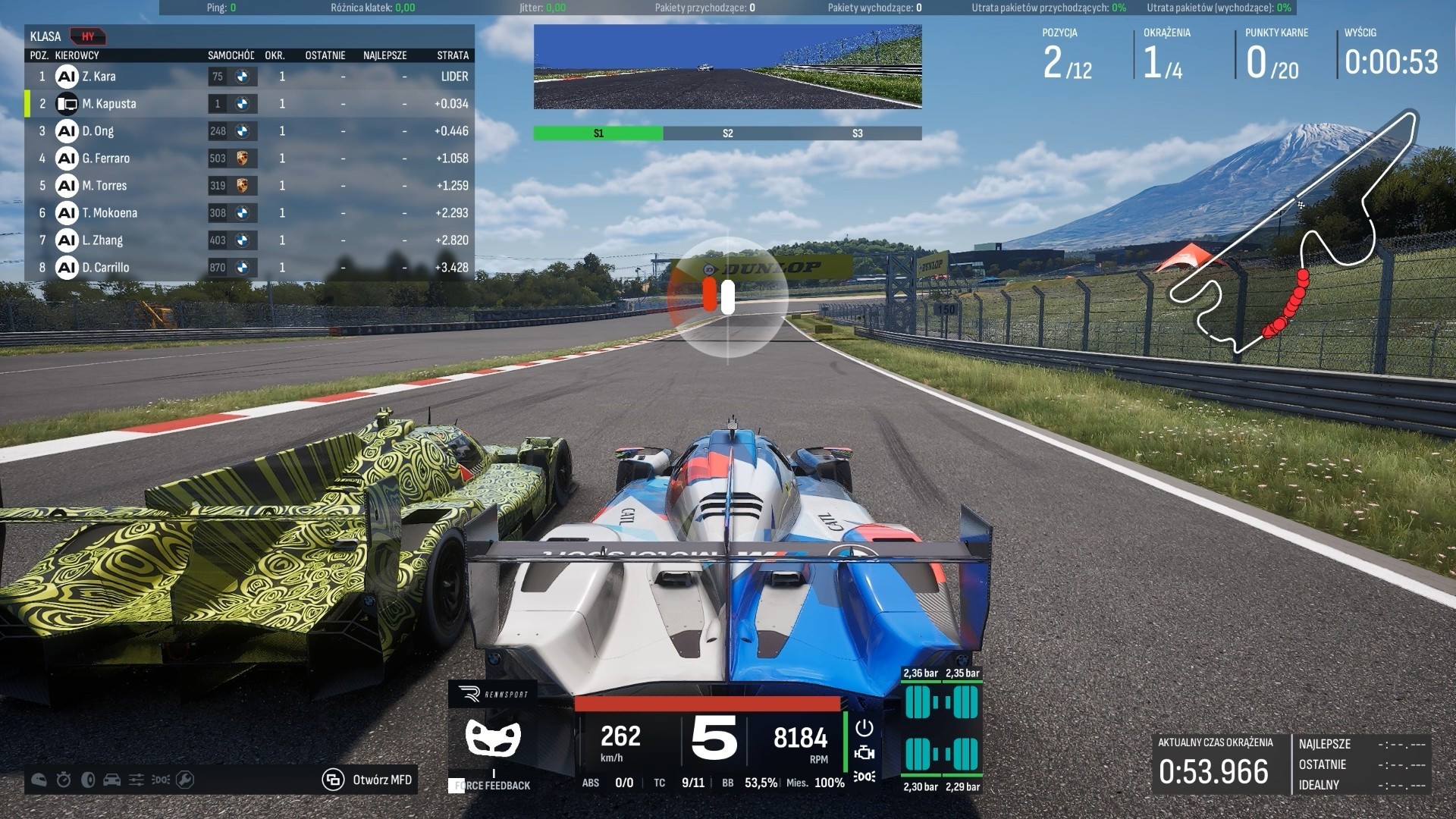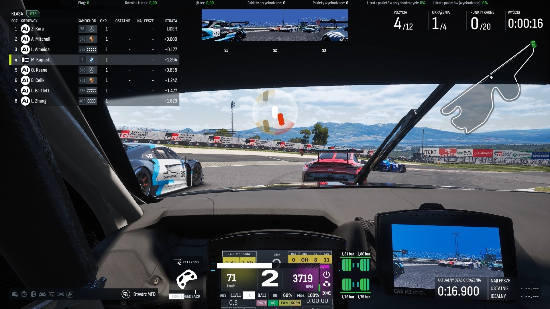 Brak jakiegokolwiek wyzwania ze strony samochodów, pomimo wyłączenia wszystkich asyst