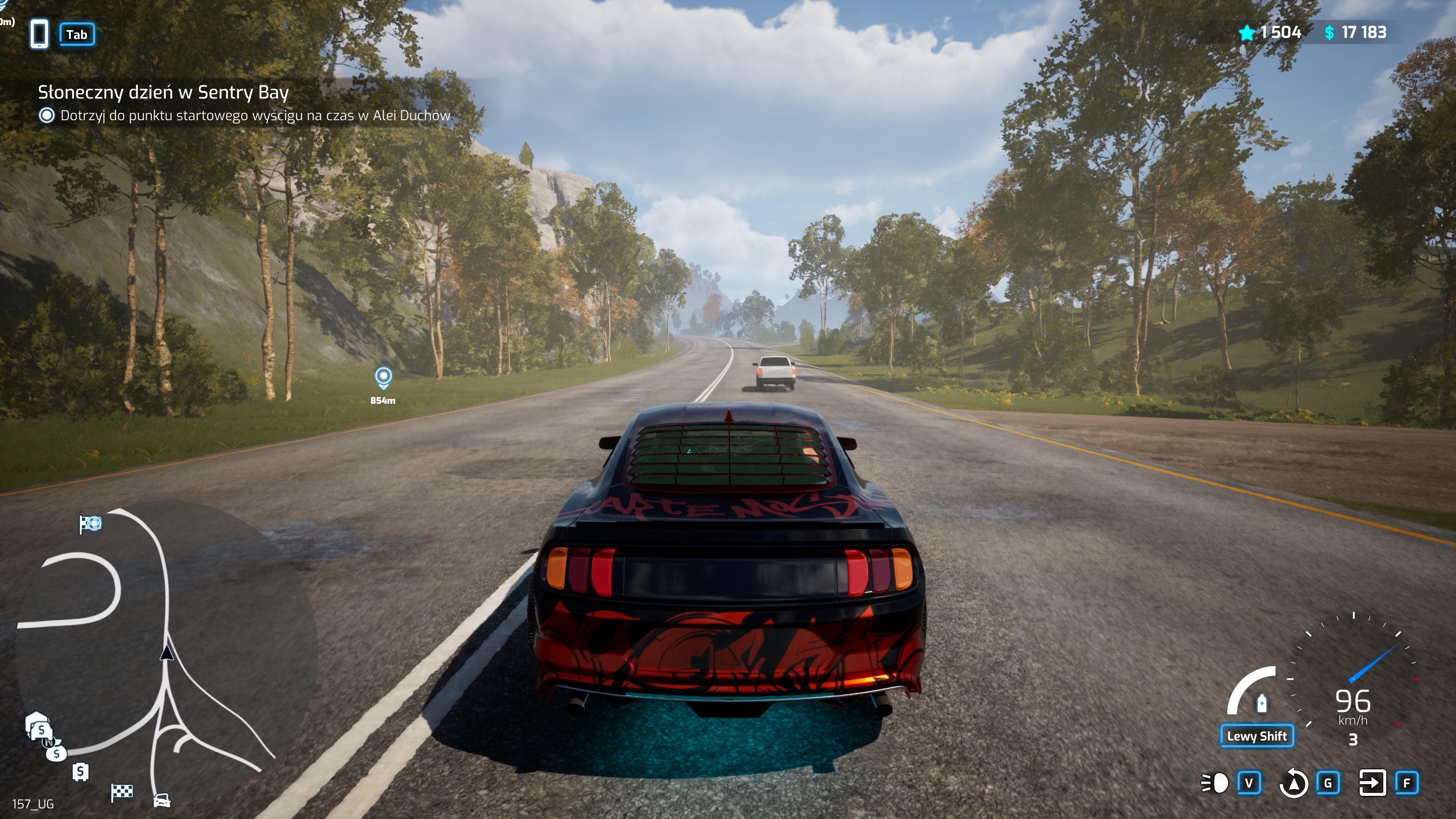 Poza opcją wyścigu, który trzeba wygrać, by zaliczyć zadanie, możemy wybrać jeszcze trzy inne warianty: trening (osiągnięty czas nie ma wpływu na postęp), wyścig na czas i pojedynek. To jednak nie ma większego znaczenia, bo podczas zawodów zawsze dzieje się to samo. W pewnym momencie przejeżdżam przez jeden z punktów kontrolnych, po czym gra wyświetla podsumowanie. Postępy niejako zalicza jeśli dojeżdżam pierwszy. Otrzymuję kasę i punkty za wygraną, ale respawnuję się w miejscu, z którego dopiero mam dojechać na ów wyścig. I tak w kółko. Sprawdzałem to na różne sposoby przez kilka godzin, wygrywając, przegrywając, wyłączając i włączając grę, a także upewniając się, że to premierowa wersja.