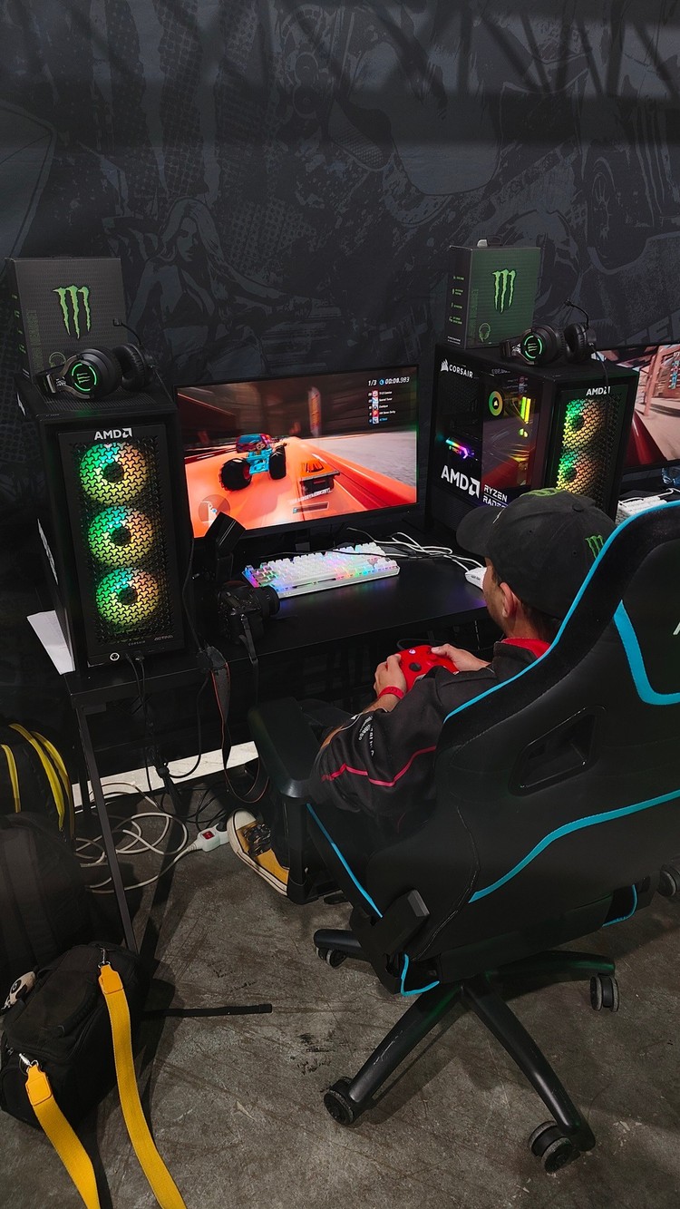 W oba dni uczestnicy walczyli o najlepsze czasy w grze Hot Wheels Unleashed 2: Turbocharged, a trzy najlepsze rezultaty w danym dniu, zgarniały paczkę nagród zawierającą plecak, podkładkę pod mysz, kubek, torbę zakupową, koszulkę i zgrzewkę Monsterków. Chętnych było sporo, rywalizacja zacięta, a walka trwała do ostatnich minut zakończenia konkursu. Przy okazji uczestnicy zabawy mogli przetestować mocny sprzęt Actiny, który pokazał jak istotna jest wysoka ilość klatek na sekundę i płynność w dynamicznych grach wyścigowych. Hot Wheels choć szalone, niekoniecznie było tak wymagające jak oczekiwali niektórzy gracze dlatego...