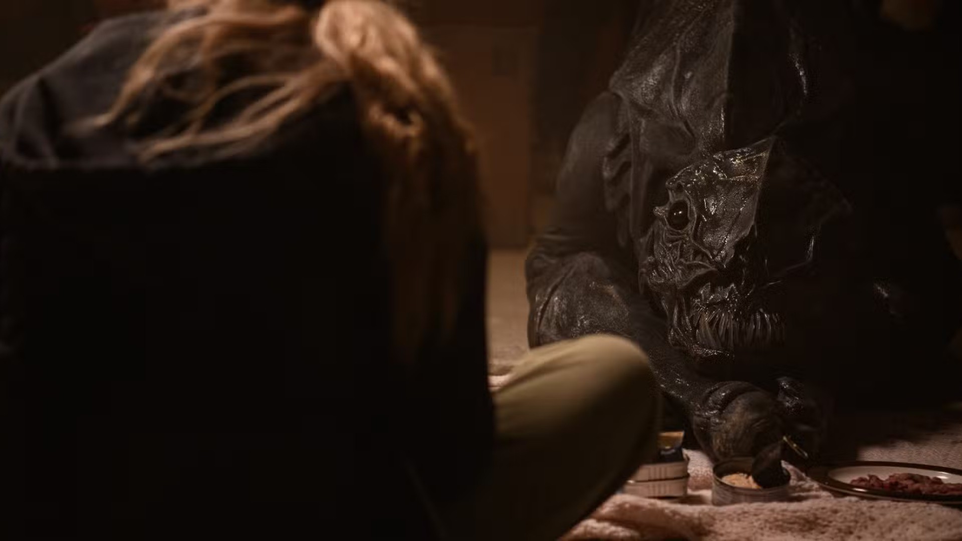 To właśnie relacja Renee z obcym napędza fabułę. Croak nie jest niewinnym pluszakiem z odległej galaktyki w stylu Spielberga, lecz bestią o wyglądzie rodem z koszmaru, gdzie czarne pancerze i ostre zęby przywodzą na myśl drapieżnika. Jednak w oczach dziewczyny istota ta staje się kimś bliskim, kimś, kto dokładnie jak ona sama, został wrzucony w świat, który go nie rozumie i się go boi. Największe wrażenie robi tutaj praca Jim Henson Creature Shop. Twórcy efektów praktycznych udowadniają, że nawet w erze cyfrowej animacji da się stworzyć realistycznego, niemal fizycznego potwora. Dzięki temu Croak jest postacią fascynująca, która oprócz ciężkich ruchów i zwierzęcych odgłosów, jednocześnie potrafi emanować czułością i zaufaniem. To czyni z kosmity pełnoprawną postać, której nie brakuje wiarygodności.