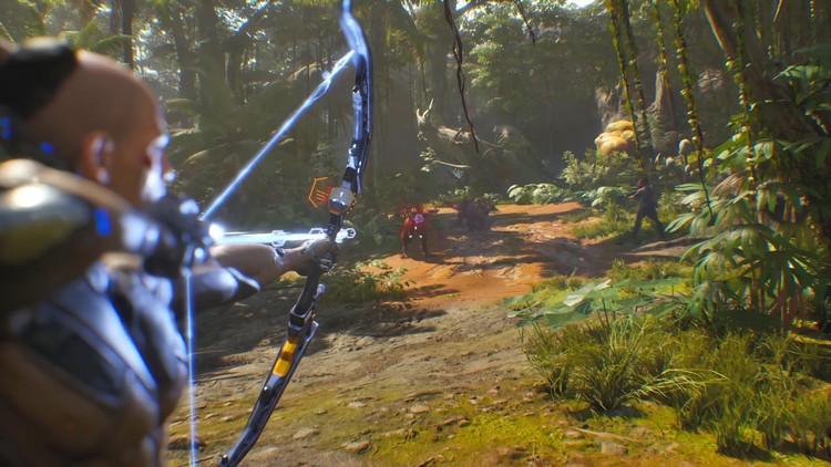 Wspomniałem, że było trzech bohaterów do wyboru. Każdy z nich posiadał inne specjalne umiejętności oraz zestaw broni. Najbardziej przypadł mi do gustu rdzenny Amerykanin z łukiem jako bronią główną, a także ktoś na kształt klasycznego żołnierza, który posiadał szybkostrzelny karabin plazmowy. Oczywiście wszyscy mieli także jakieś bronie dodatkowe, więc spokojnie można tutaj pograć zarówno kosmiczną kuszą jak i potężną wyrzutnią rakiet. Miałem tylko jeden poważny problem wobec wszystkich bohaterów i ich oręża… w żadnym przypadku nie czułem tego czegoś w momencie trafienia przeciwnika. Żadnego fajnego impact hitu, zupełnie jakbym strzelał z pistoletu na kulki. Wyjątkiem mógłby być łuk, o ile uda nam się trafić w głowę przeciwnika i sciągnąć go za pierwszym razem. W każdym innym przypadku, to co jest trzonem tej gry, czyli strzelanie, raczej mocno mnie zawiodło. To samo było podczas starcia z Triceratopsem. Po prostu naciskasz spust i zero większych emocji, pociski lecą, w coś trafiają, ale nie towarzyszy temu żadne fajne uczucie. Zaniepokoiło mnie to i prawdę mówiąc odrobinę zniechęciło. Często do shooterów przyciąga graczy uczucie towarzyszące trafieniom przeciwnika, a tutaj tego nie było. Co do skilli nazywanymi pierwotnymi formami… gra nie do końca zachęcała do ich używania. Jasne, czasem przydał się szybki doskok do przeciwnika, aby zadać potężny cios, ale jednak większość przeciwników brało się na dystans, a do tego wystarczyła posiadana broń, a wszystkie “magiczne” zdolności nie były na tyle śmiercionośne, aby z niecierpliwością czekało się na ich zregenerowanie.
