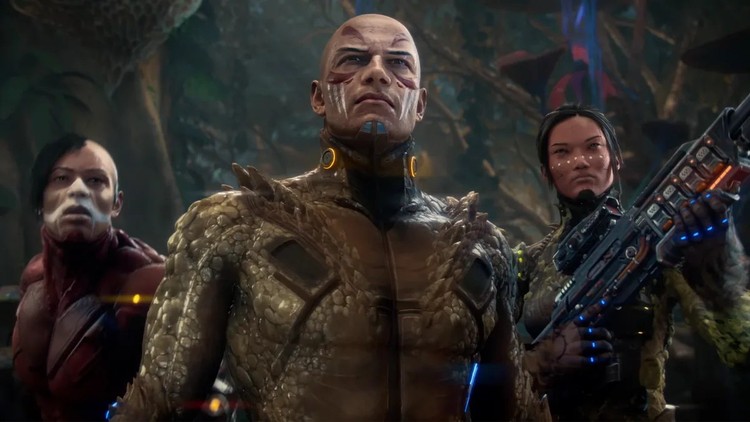 To było moje pierwsze podejście do Turoka, dlatego nie spodziewajcie się tutaj nawiązań do starszych odsłon. Mimo wszystko cieszę się, że tak wyszło, bowiem mogłem podejść do tej gry z czystym umysłem. Build, który Saber Interactive zaprezentowało podczas zamkniętego pokazu, oferował trzy dość krótkie misje i jedną walkę z bossem. To w sam raz, aby sprawdzić każdego z trzech dostępnych bohaterów, których można było zmieniać po każdym wyzwaniu. Okazało się jednak, że studio postanowiło położyć nacisk na kooperację, dlatego jedyną opcją było zagranie we trzech i to w zasadzie bez możliwości poznania jakkolwiek fabuły. Jedynie główny producent gry dał nam kilka wskazówek, jak choćby taką, że będziemy podróżowali między różnymi światami, w których spotkamy różnorodne lokacje i przeciwników. Swoją drogą ilość atakujących nas potworów sprawiła, że ciężko było się przyjrzeć pokazanym miejscówkom, ale na tyle na ile zdążyłem dostrzec w tym chaosie, te raczej nie wyróżniały się niczym szczególnym. Ot, klasyczna dżungla z dużą ilością roślinności i kawałek świątyni. Wszystko było dość ciemne, bure i ponure. Przy okazji macie tu wskazówkę, że w trakcie misji naprawdę sporo się dzieje i mało jest momentów w których można złapać oddech.