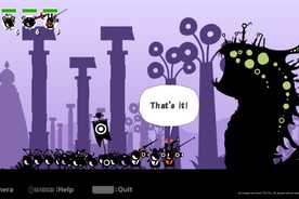W przypadku opisywanego tytułu na uwagę zasługuje także minimalistyczna i specyficzna oprawa wizualna. Przede wszystkim nasi bohaterowie zbudowani są w dość nietypowy sposób (jedynie z oczu) i poruszają się po niezwykle klimatycznych lokacjach. Na potrzeby Patapon Remasteredzadbano o ulepszenie grafiki w stosunku do pierwowzoru.
