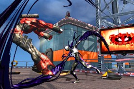 Pod względem oprawy wizualnej Spiderman: Shattered Dimensions prezentuje się bardzo solidnie. Na uwagę zasługuje fakt, że w zależności od tego, w którym wymiarze przebywamy, mamy do czynienia z innym stylem graficznym – od komiksowego po mroczn.