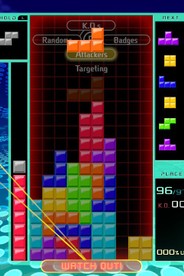 Tetris 99 to parodia trybu battle royale znanego z PUBG czy Fortnite. W jednej rywalizacji bierze udział 99 graczy, ale każdy z nich układa klocki na swoim ekranie, przy okazji podrzucając ułożone bloki innym uczestnikom rozgrywki po to, by utrudnić im zadanie (sami również musimy uważać, bo pozostali użytkownicy także mogą próbować nas wyeliminować).