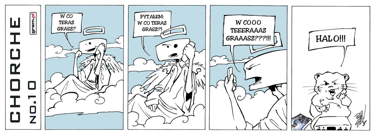 Wymyślenie ciekawego, porywającego i oryginalnego scenariusza dziesiątej (a w zasadzie jedenastej) historii dopełnionej kreską Grzegorza Pawlaka nie było, jak się okazało, zadaniem łatwym. Dostaliśmy od Was sporo propozycji, a komisja złożona z członków ekipy gram.pl oraz samego rysownika podjęła decyzję o wyborze tego jednego, naszym zdaniem najlepszego, projektu. Autorem opisu przedstawionej na klatkach komiksu sytuacji jest Gramowicz Szymon Adamus, natomiast efekty jego współpracy z GiPem możecie zobaczyć poniżej.