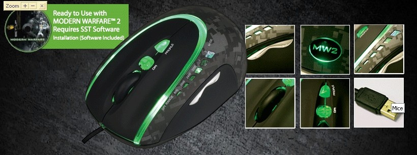 Myszka Modern Warfare 2 oczywiście nie tylko świeci i wygląda - jej rozdzielczość to maksymalnie 3200 dpi, a jakby komuś nie odpowiadała jej waga, to zawsze może skorzystać z 7 specjalnych ciężarków. Niecodziennemu tunningowi zostały poddane konsolowe pady. Zarówno te dla Xboksa 360 jak i PlayStation 3 mają pod spodem po dwa dodatkowe przełączniki umożliwiające błyskawiczną zmianę schematu funkcji przypisanych do przycisków. Oczywiście nie należy zapominać o podświetleniu analogowych gałek na zielono. W końcu to kluczowy element...